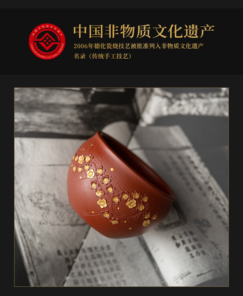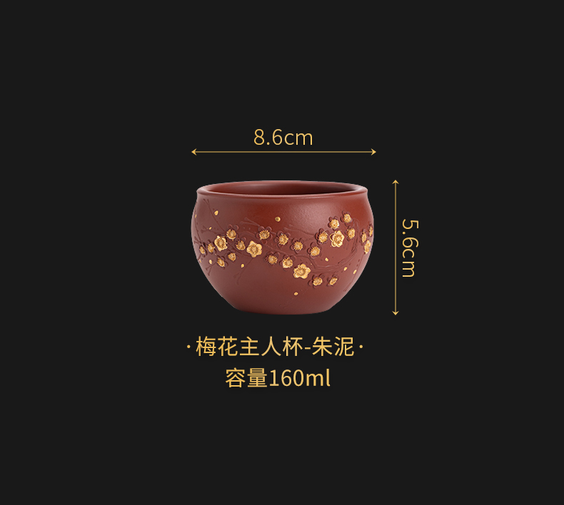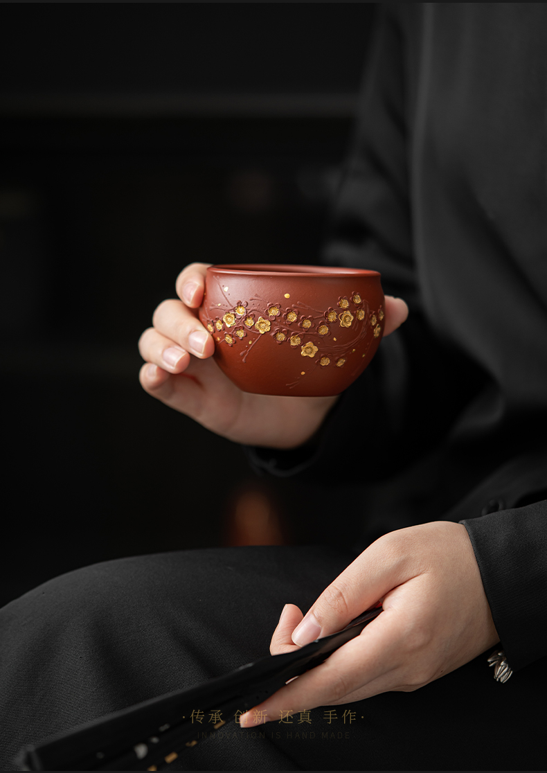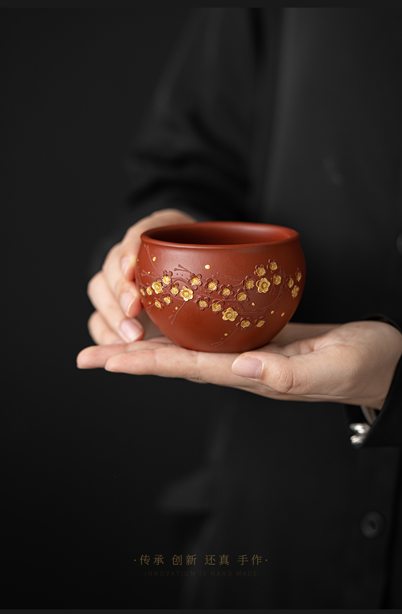 苏氏陶瓷(SUSHI CERAMICS) J0993 160ml 原矿段泥描金梅花茶杯 红色(单位:个)