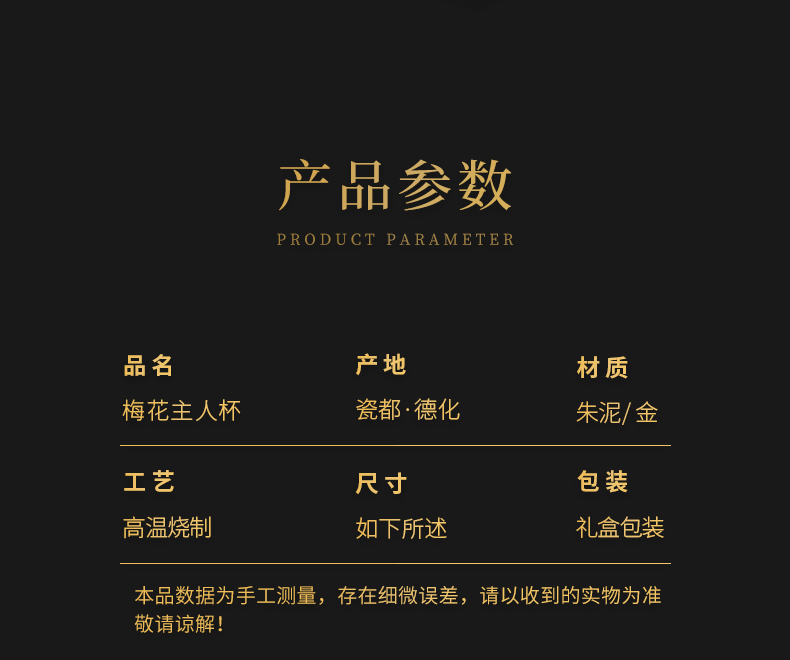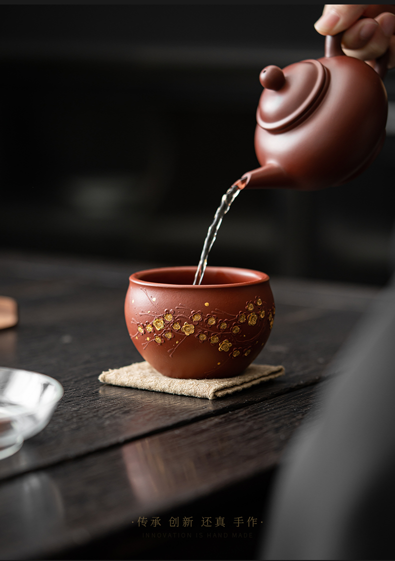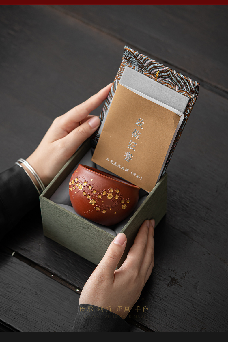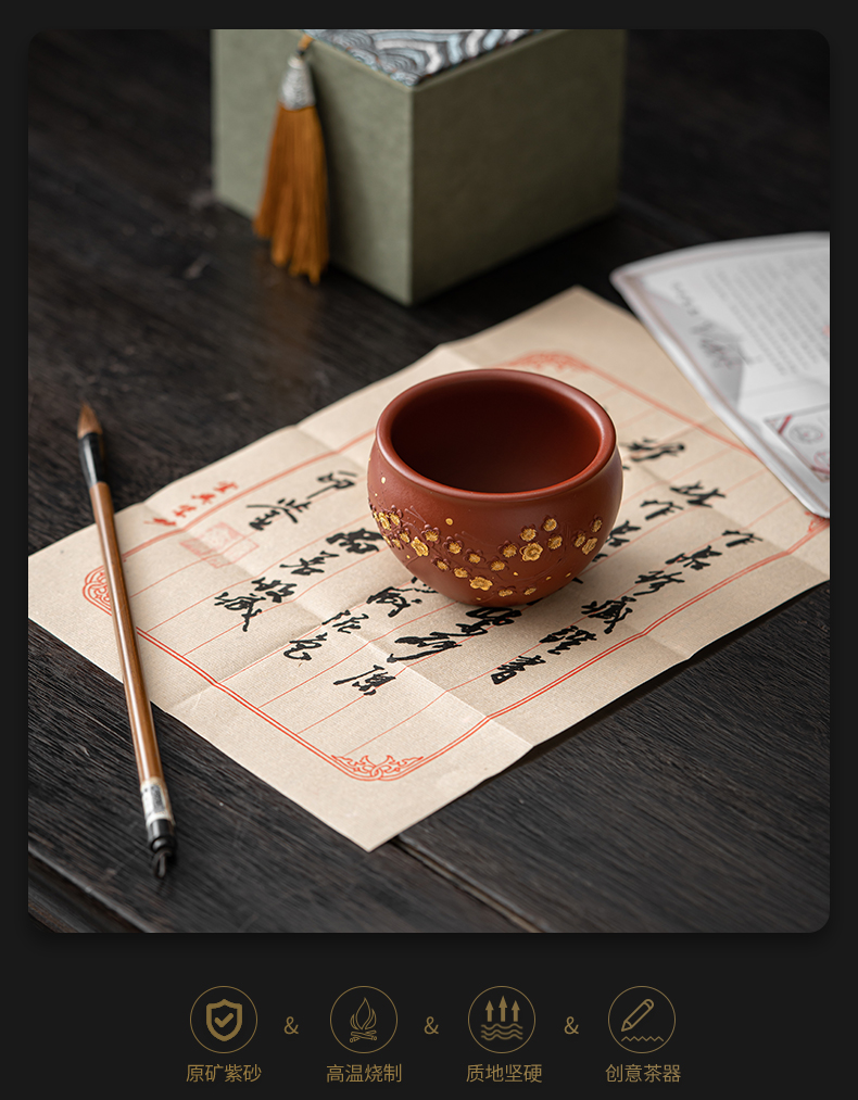 苏氏陶瓷(SUSHI CERAMICS) J0993 160ml 原矿段泥描金梅花茶杯 红色(单位:个)