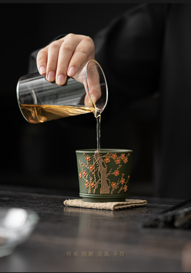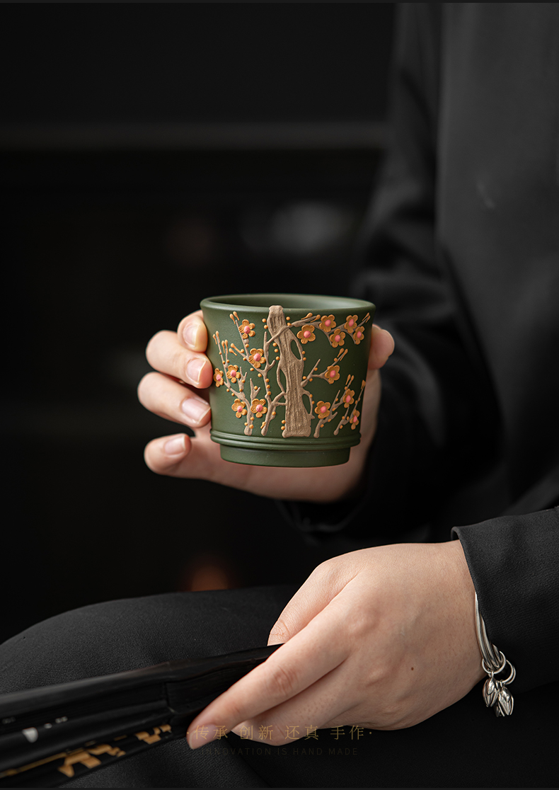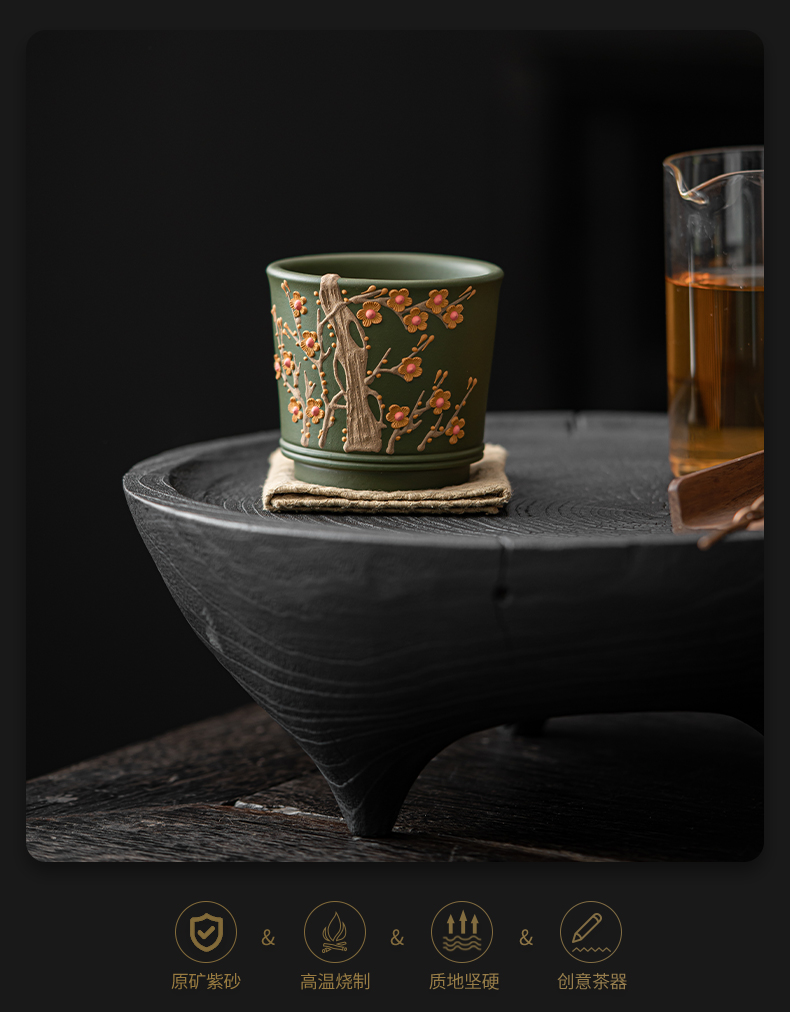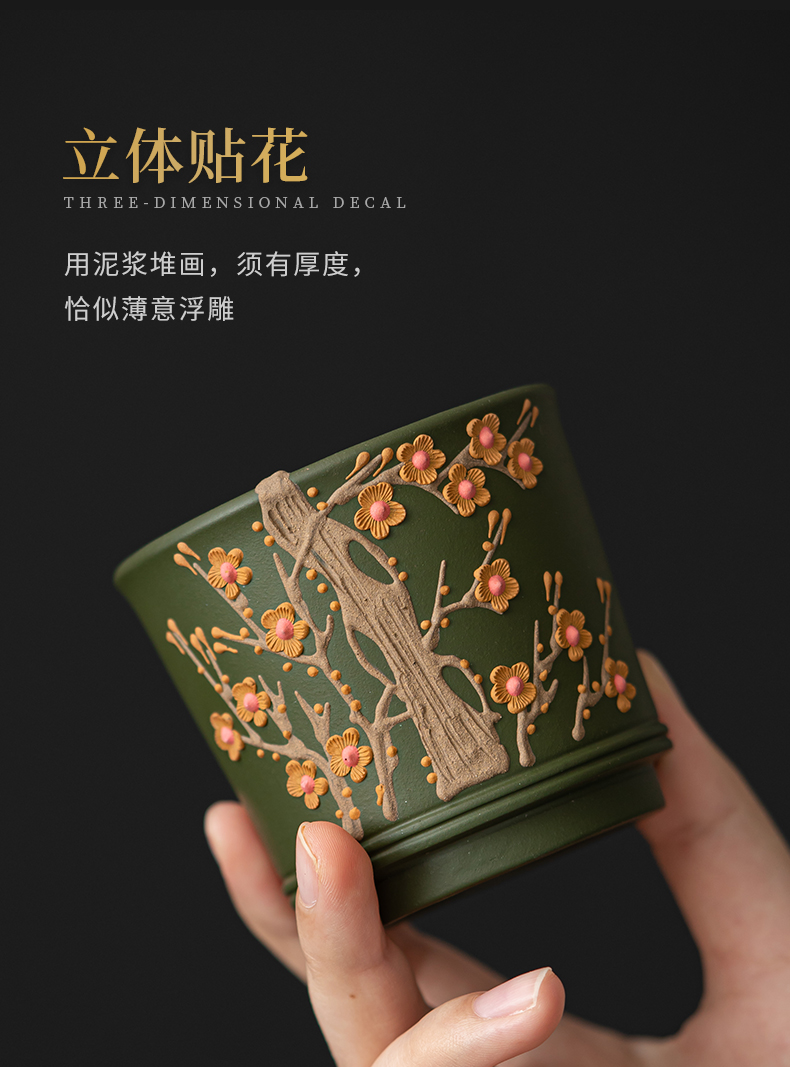 苏氏陶瓷(SUSHI CERAMICS) J1000 130ml 原矿紫砂绿泥梅花茶杯 绿色(单位:个)