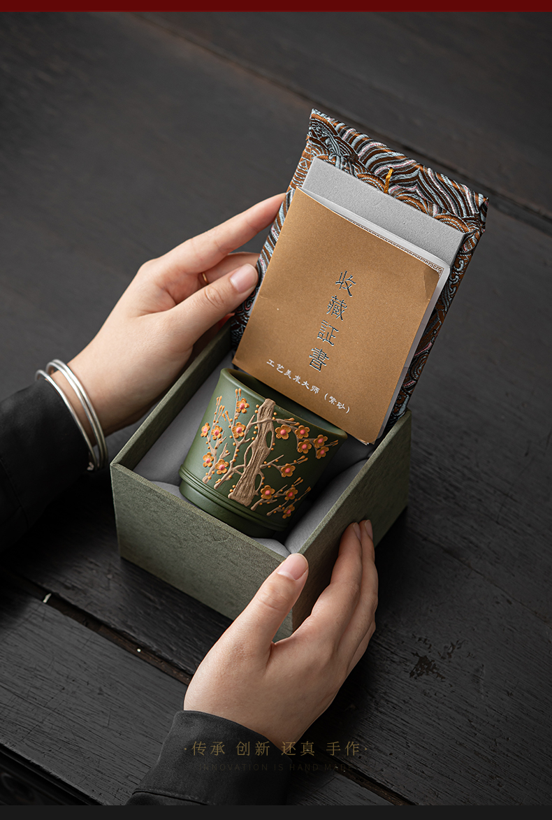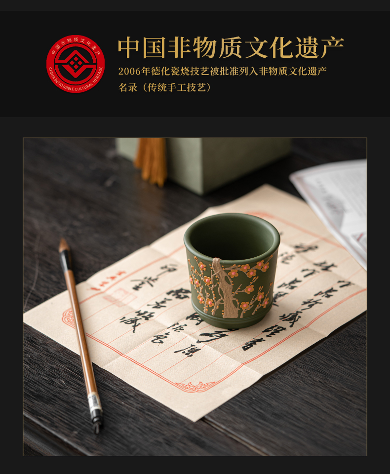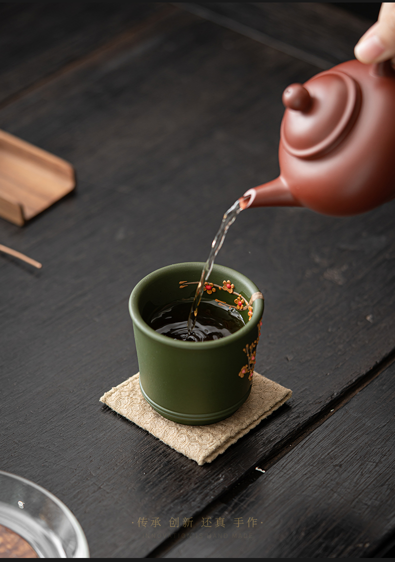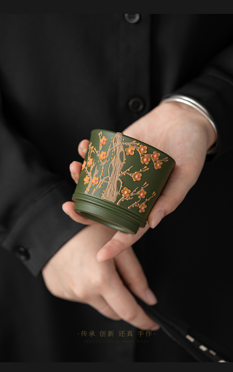 苏氏陶瓷(SUSHI CERAMICS) J1000 130ml 原矿紫砂绿泥梅花茶杯 绿色(单位:个)