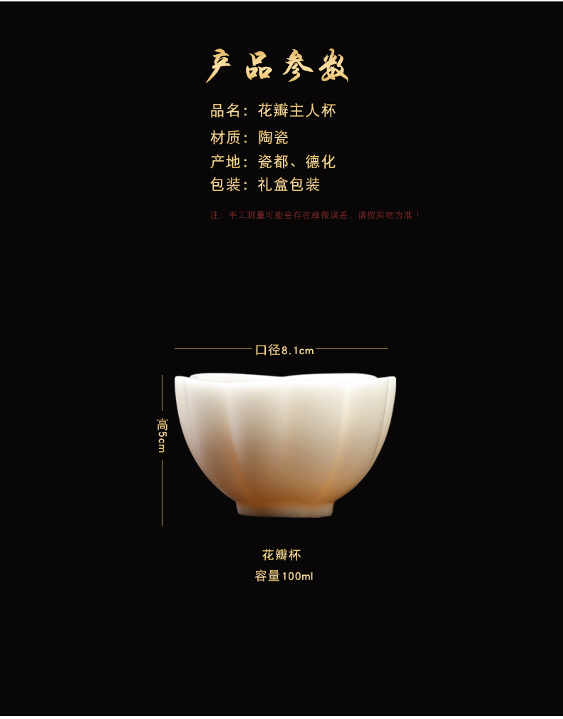 MULTIPOTENT YXCT10-30 100ml 羊脂玉瓷异形茶杯3号 白色(单位:个)