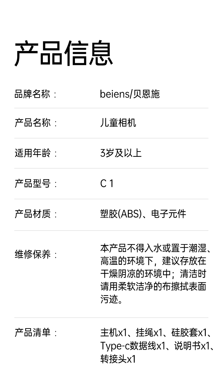 贝恩施 儿童玩具相机 C1 64G内存 独角兽(粉色)(单位:个)