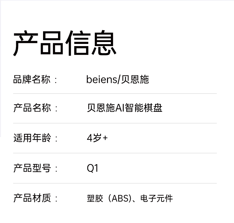 贝恩施 Q1 0.3kg 儿童智能棋盘 白色(单位:个)