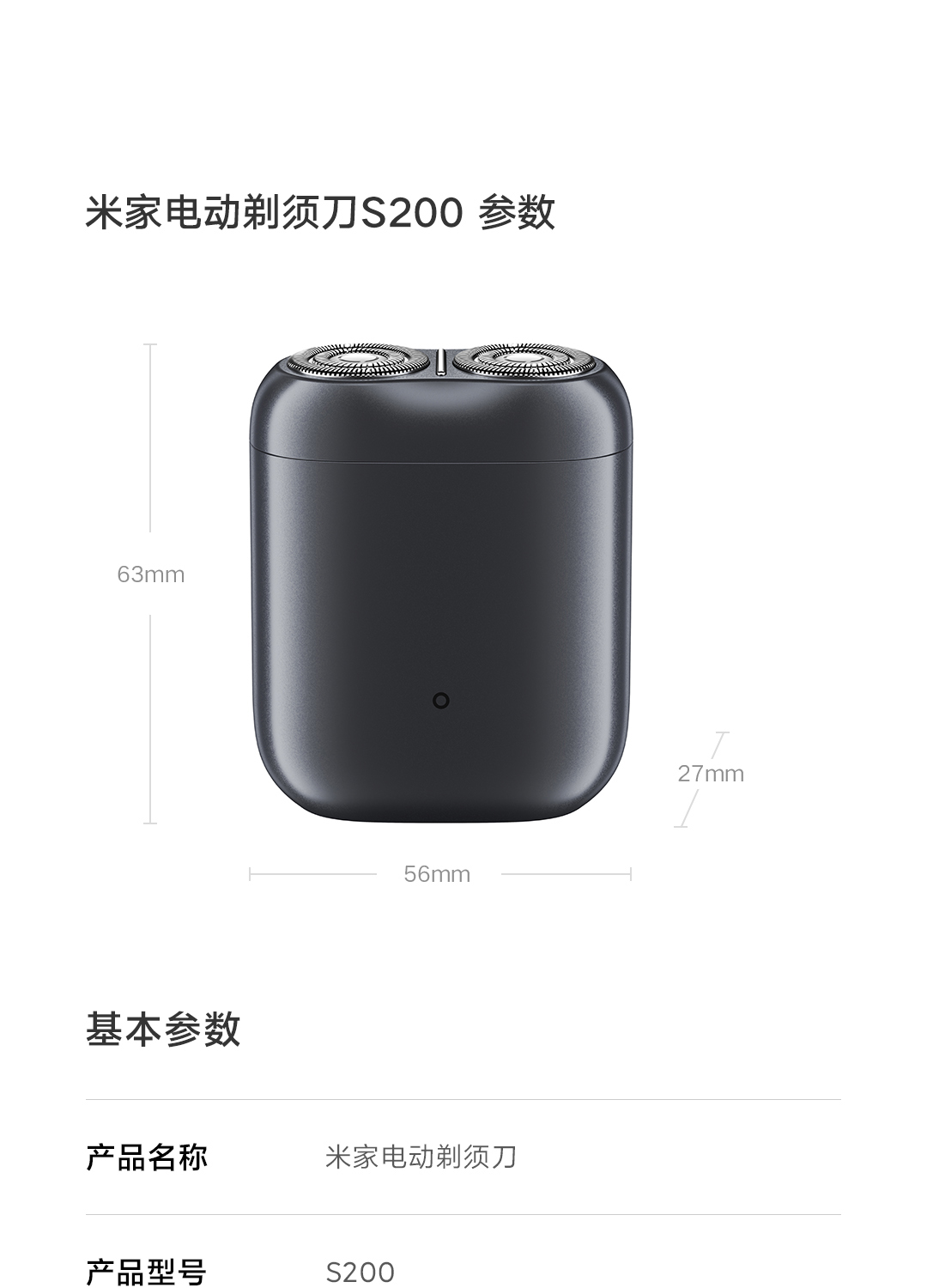 米家(MIJIA) S200 额定功率3W 电动剃须刀 灰色(单位:台)