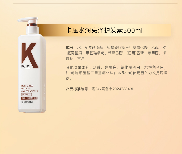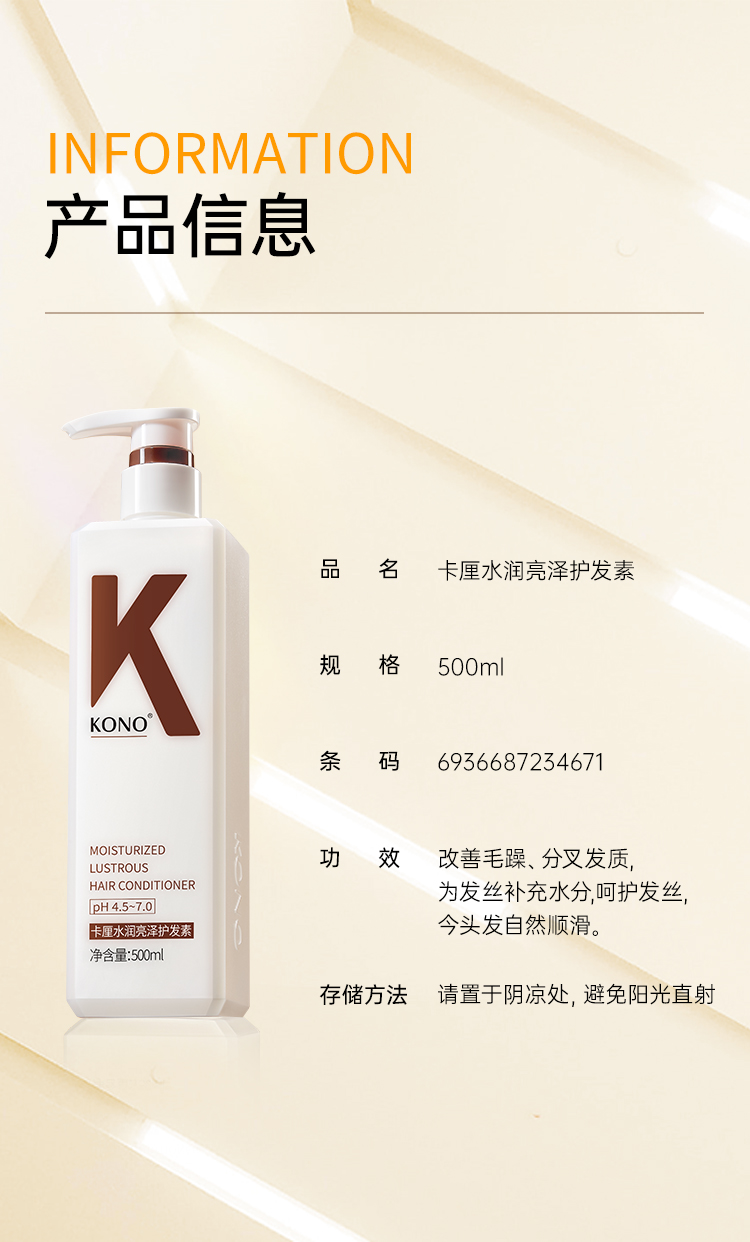 KONO 卡厘水润亮泽护发素 500ml 经典滋养锁色 混色(单位:瓶)