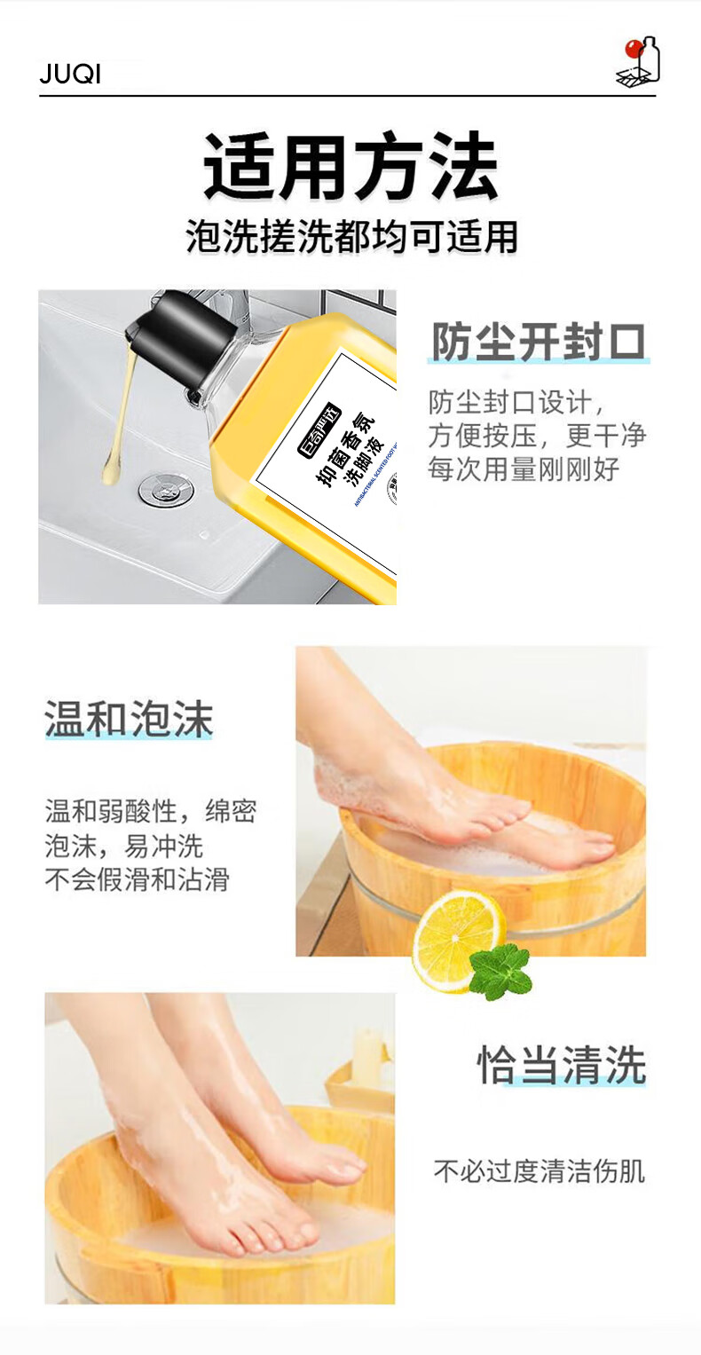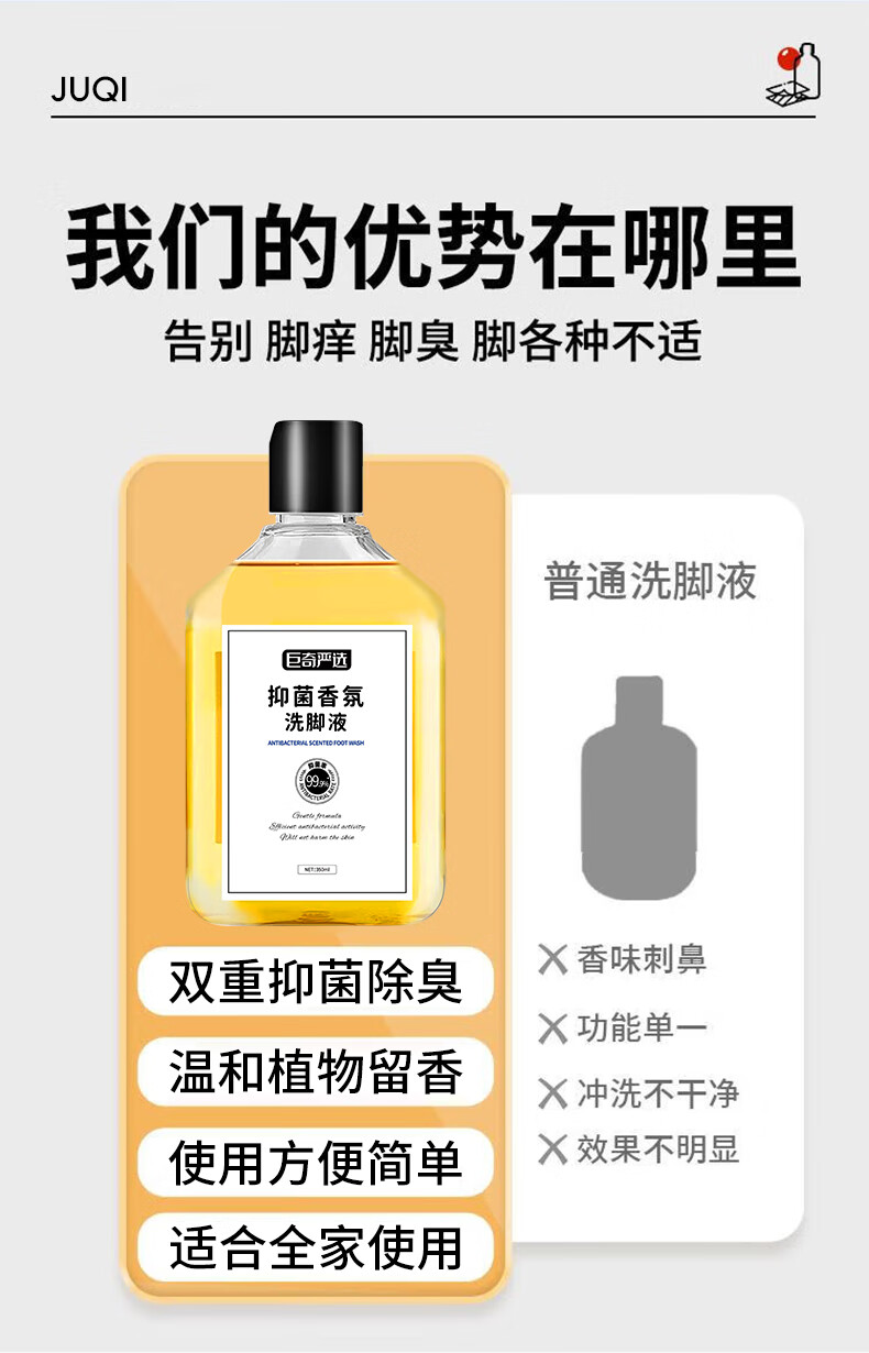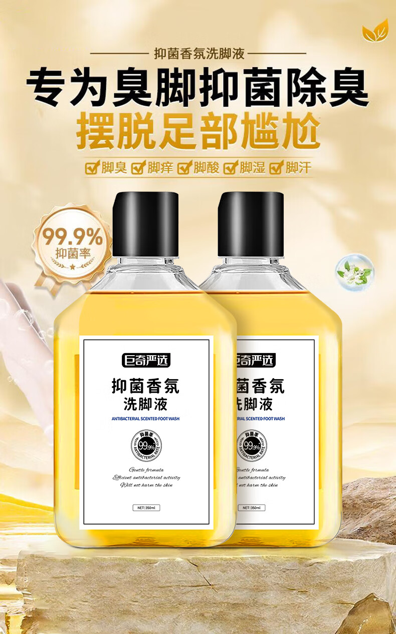 巨奇(JUQI) 抑菌香氛洗脚液 350ml*3瓶(含1个搓脚垫) 除臭杀菌 金色(单位:套)