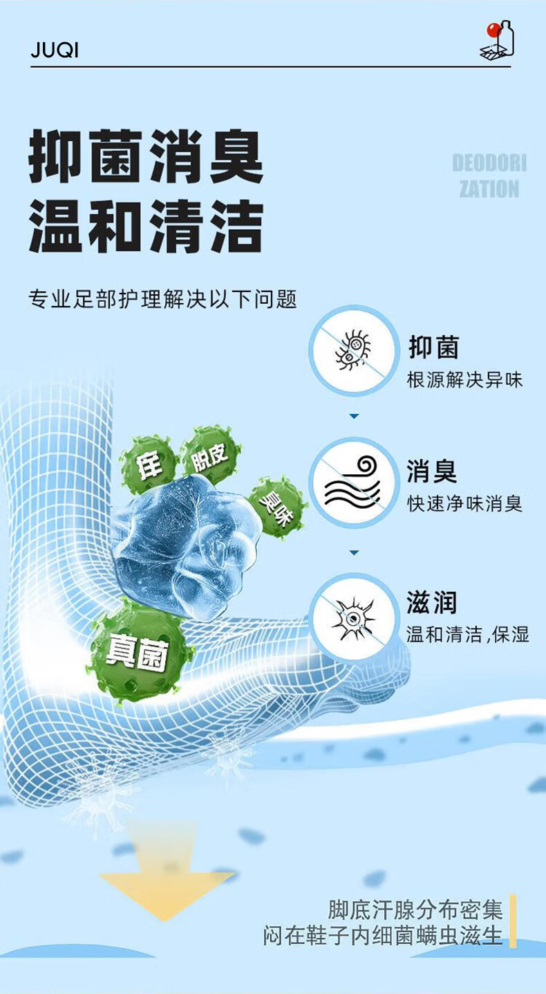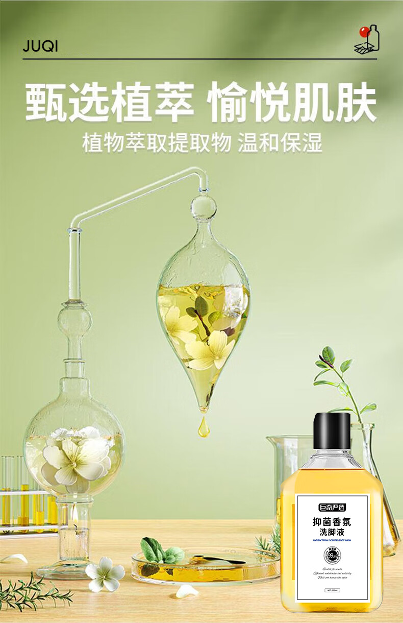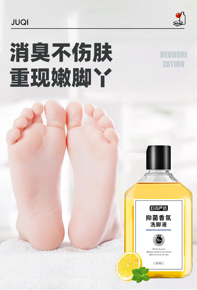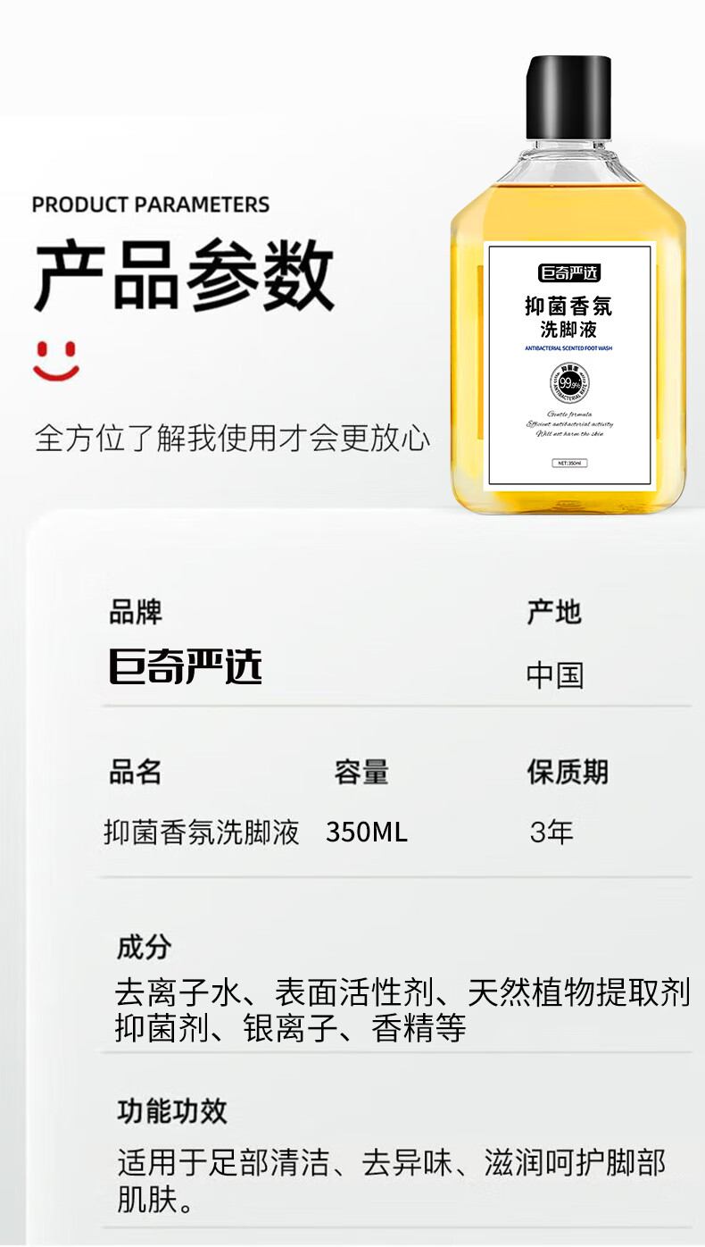 巨奇(JUQI) 抑菌香氛洗脚液 350ml*3瓶(含1个搓脚垫) 除臭杀菌 金色(单位:套)