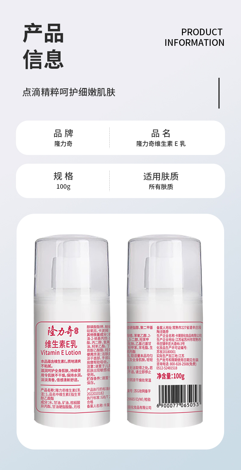 隆力奇 LLQ-003 维生素E乳100g* 2 补水保湿 养护肌肤 白色(单位:瓶)