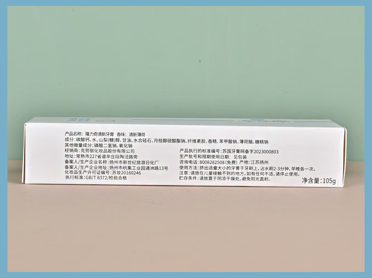 隆力奇 薄荷香型 105ml/支*2 清新牙膏 白色(单位:套)