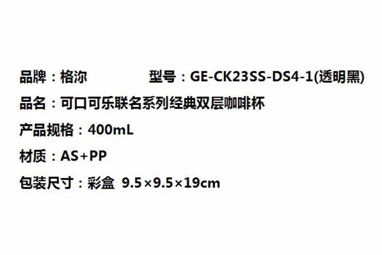格沵(GERM)可口可乐联名系列经典双层咖啡杯系列400ml(单位:个) 白色