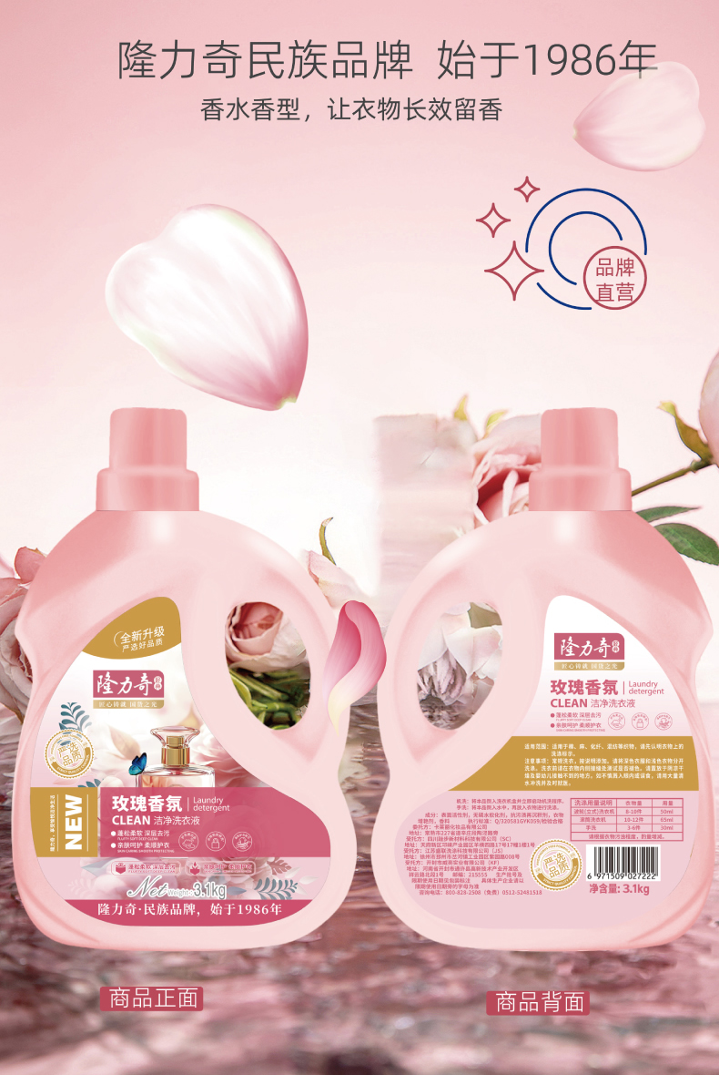 隆力奇 玫瑰香氛洗衣液 LLQ-8040200091 3.1kg*3瓶 玫瑰红色(单位:组)