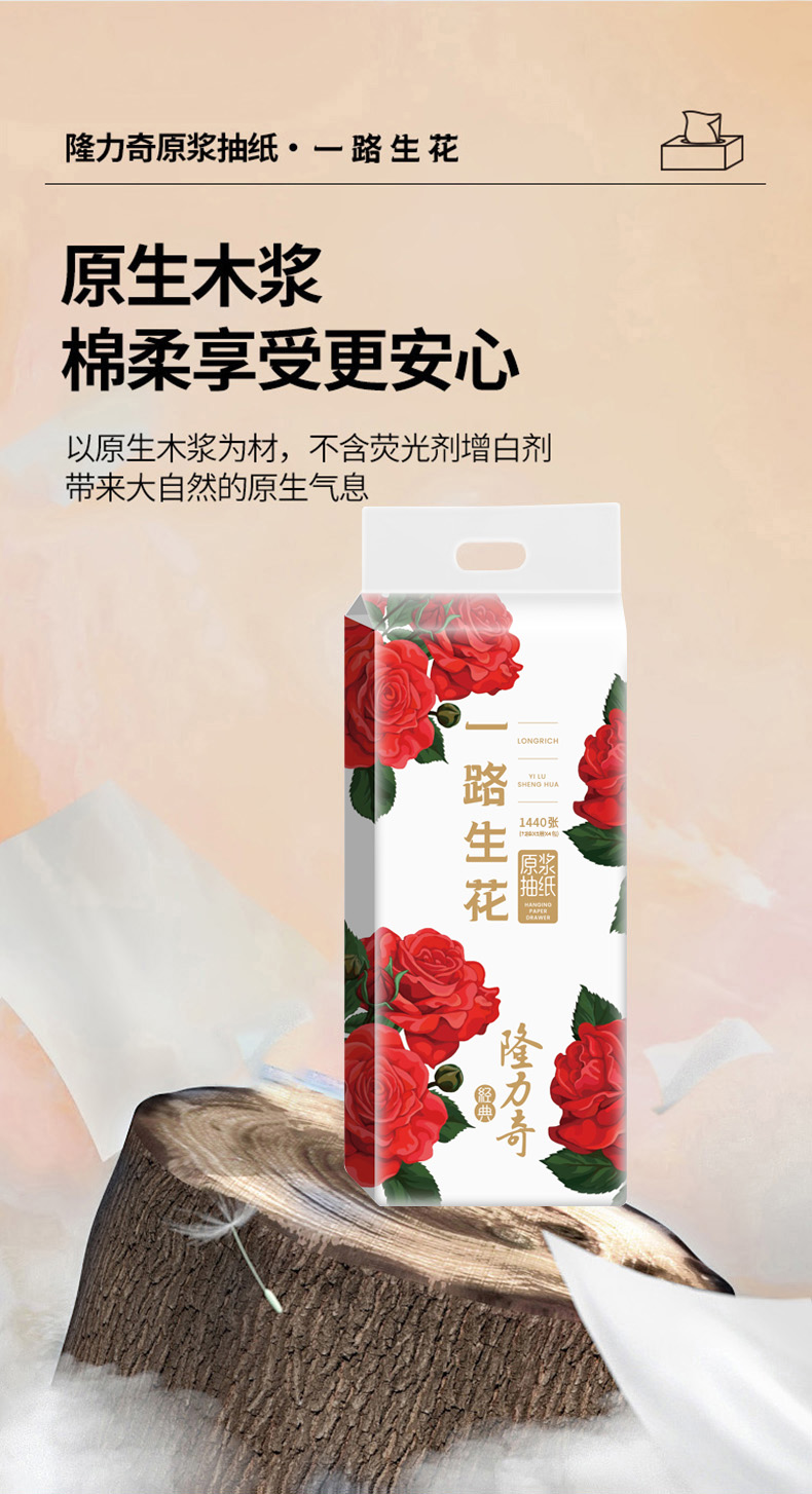 隆力奇 金标抽纸 LLQ-003 5层72抽/4包*1 玫瑰红色(单位:提)