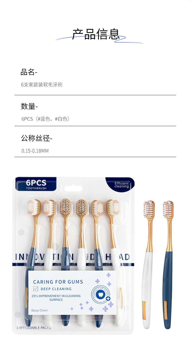 SOAO 成人牙刷 6支装*2套 家庭装 混色(单位:套)