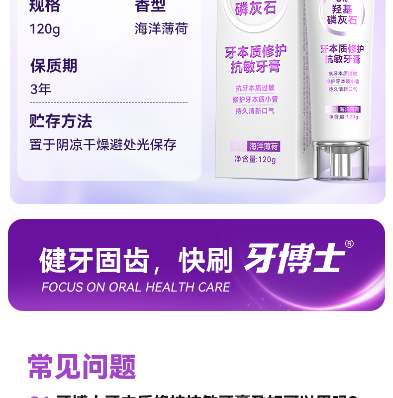 牙博士 牙膏 牙本质修护抗敏 120g 白色(单位:支)