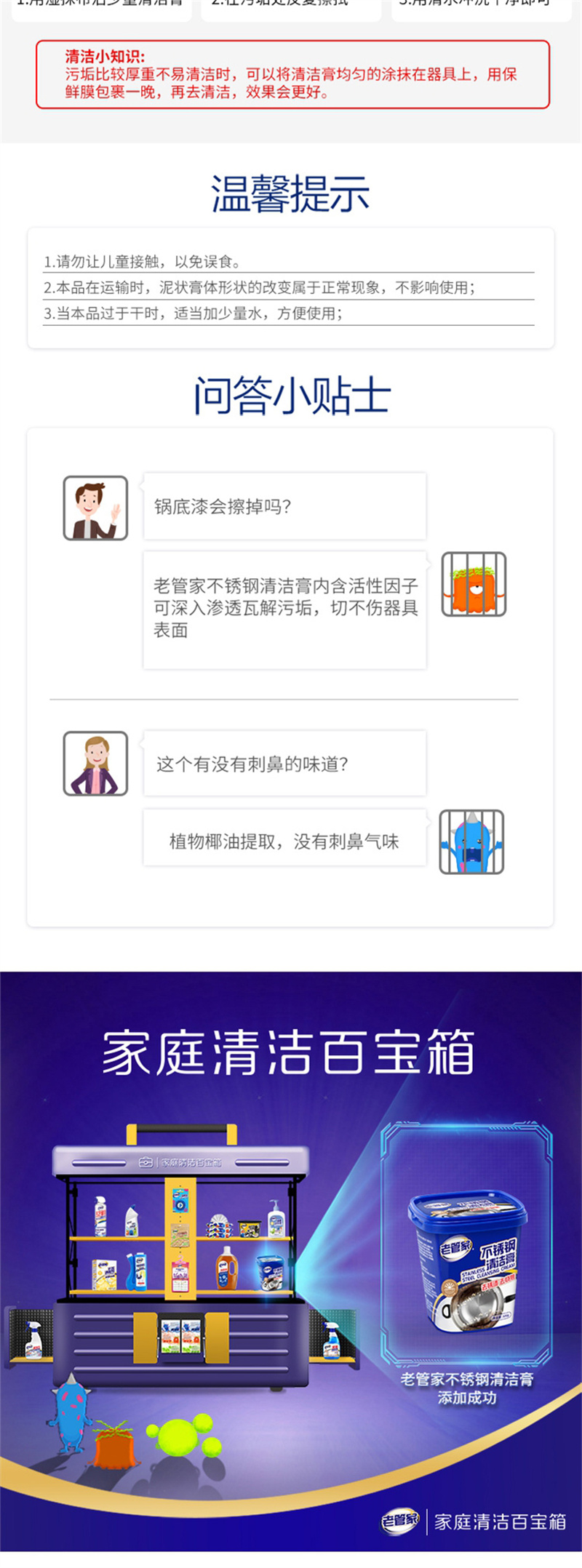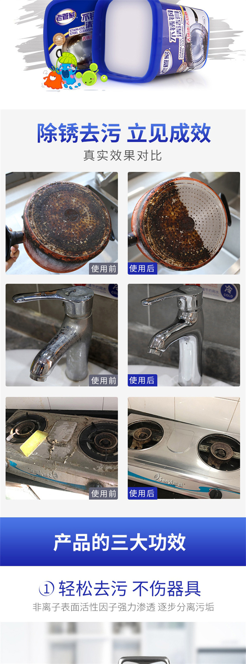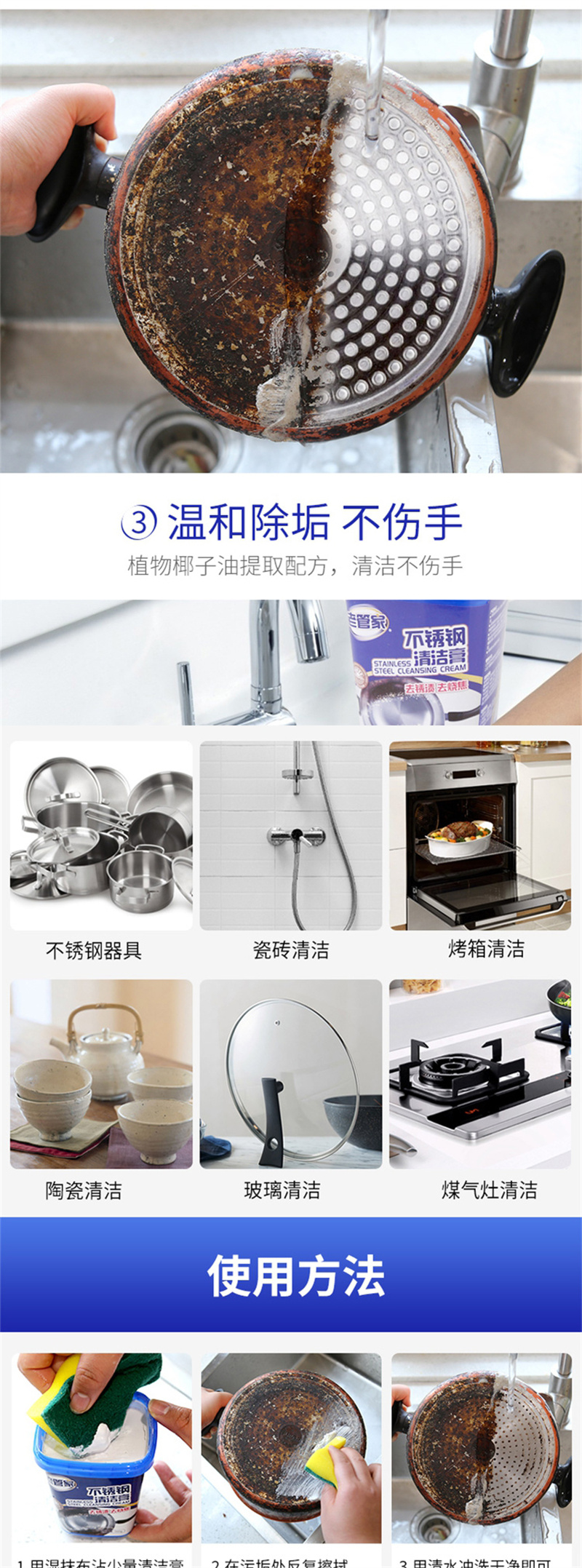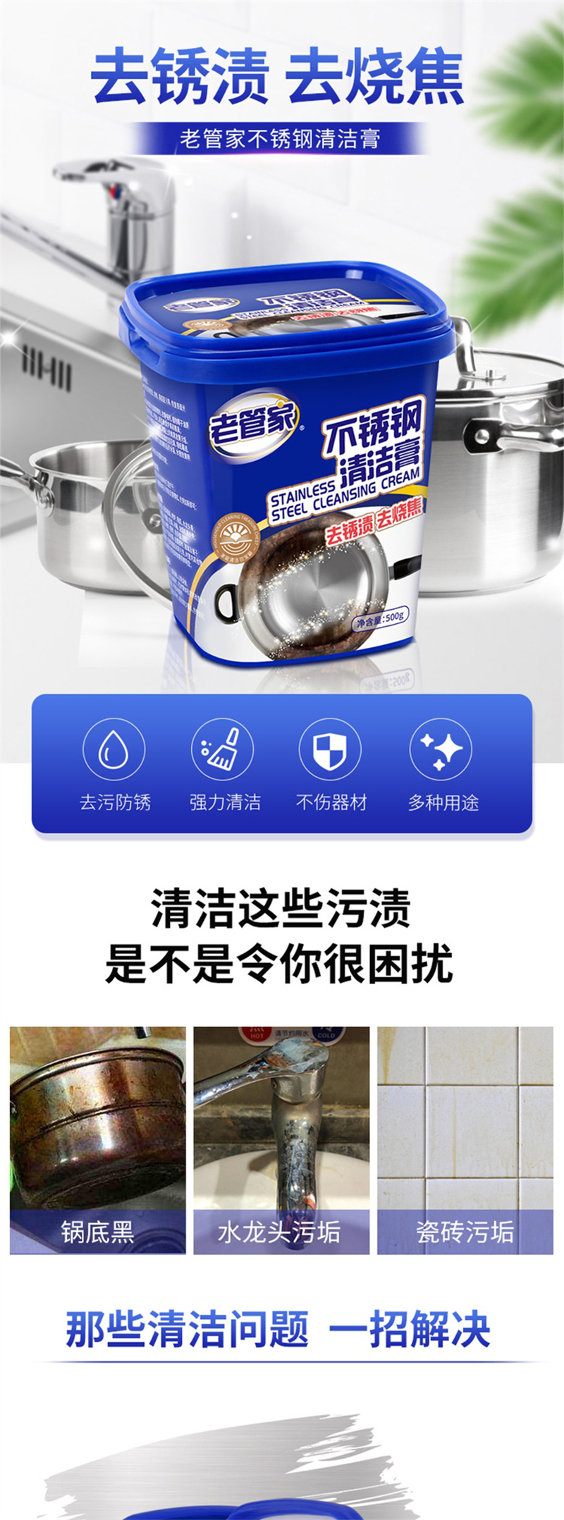 老管家 不锈钢清洁膏锅底黑垢清洁剂 500g/瓶