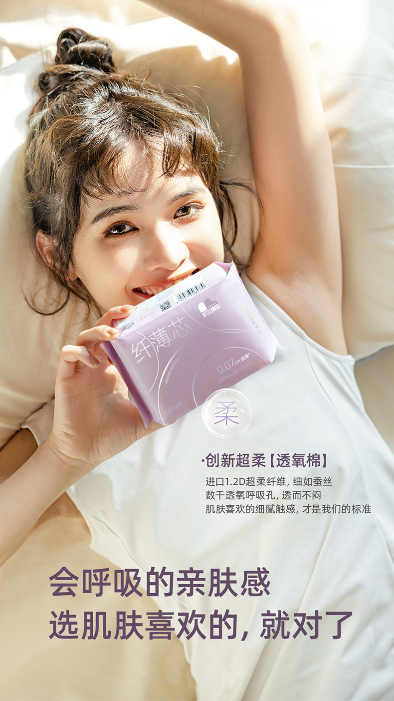凯儿得乐(care daily) 透氧棉 日用卫生巾240mm*3包 纤薄芯卫生巾 粉色(单位:组)