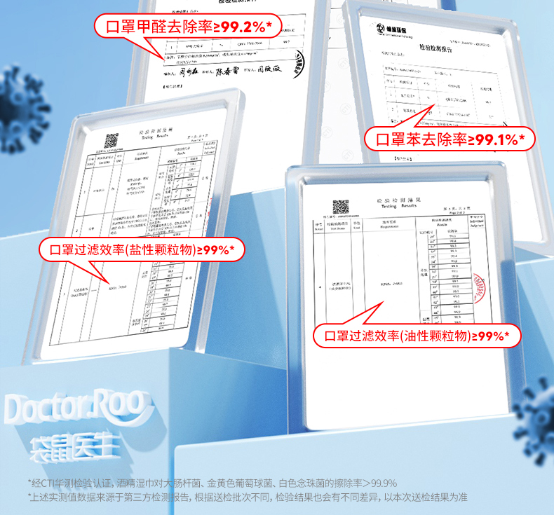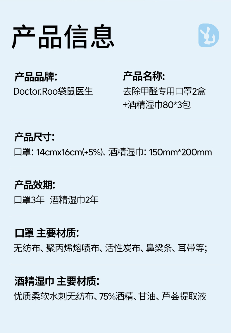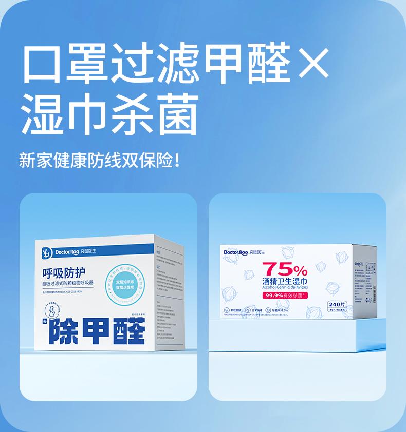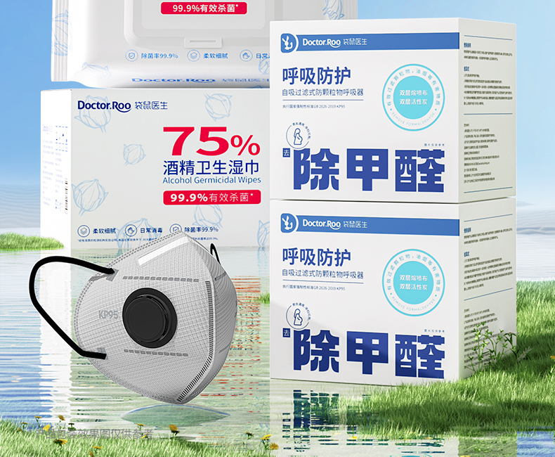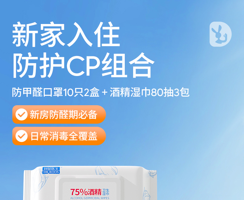 袋鼠医生(DR.ROOS) 防甲醛 口罩10只*2盒+酒精湿巾80抽*3包 口罩新家入住防护套装 白色(单位:组)