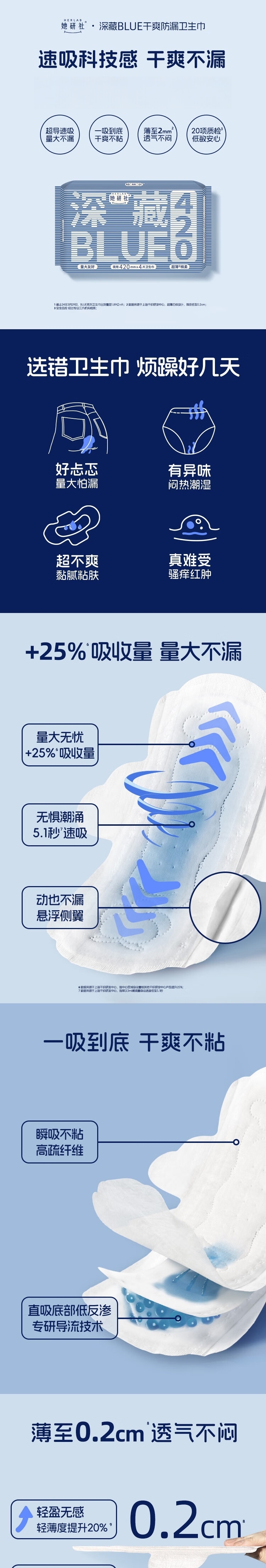 她研社(Herlab ) 夜用组合 420mm*20片 深藏blue卫生巾 蓝色(单位:组)