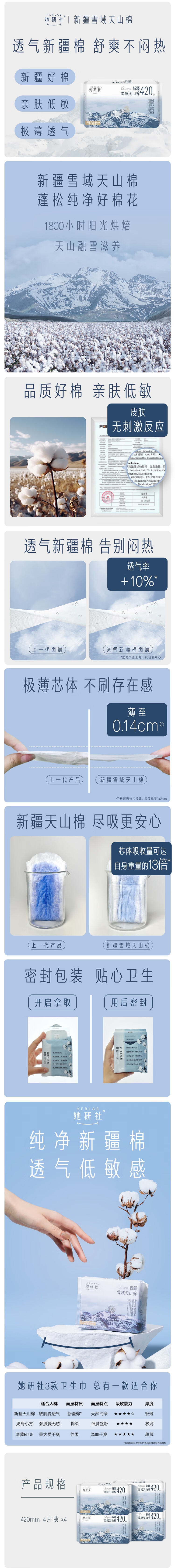 她研社(Herlab ) 新疆纯棉卫生巾 420mm*16片 超长夜用 蓝色(单位:组)