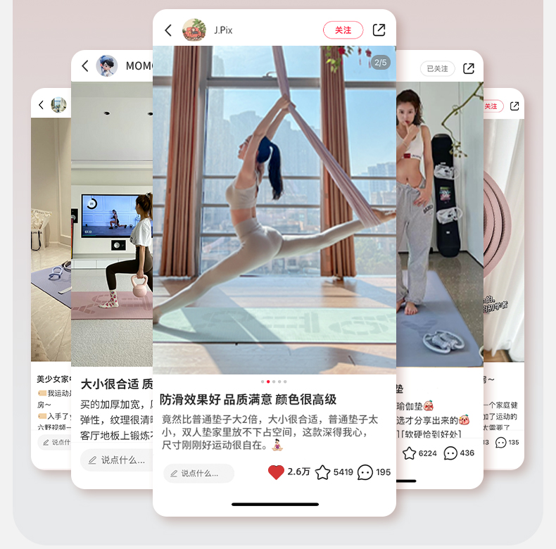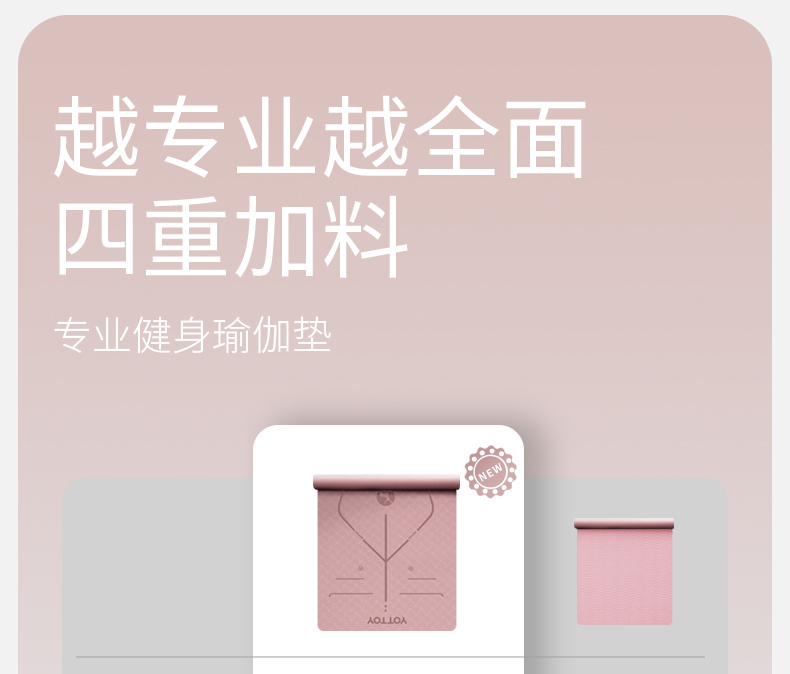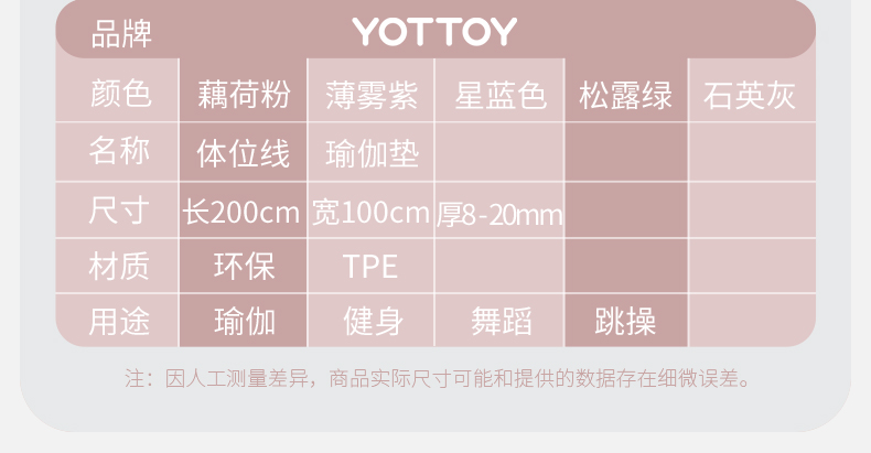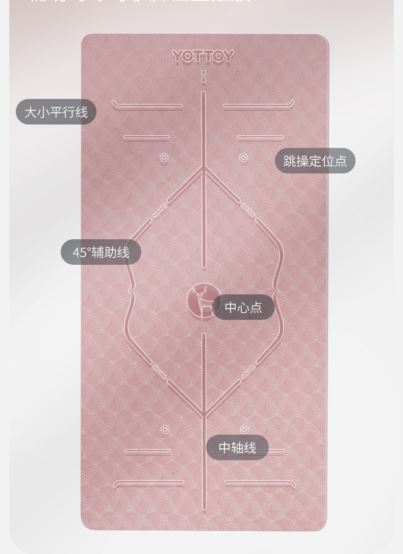 YOTTOY 体位线系列单色瑜伽垫100cm YJD231003A01 8mm 粉色(单位:条)