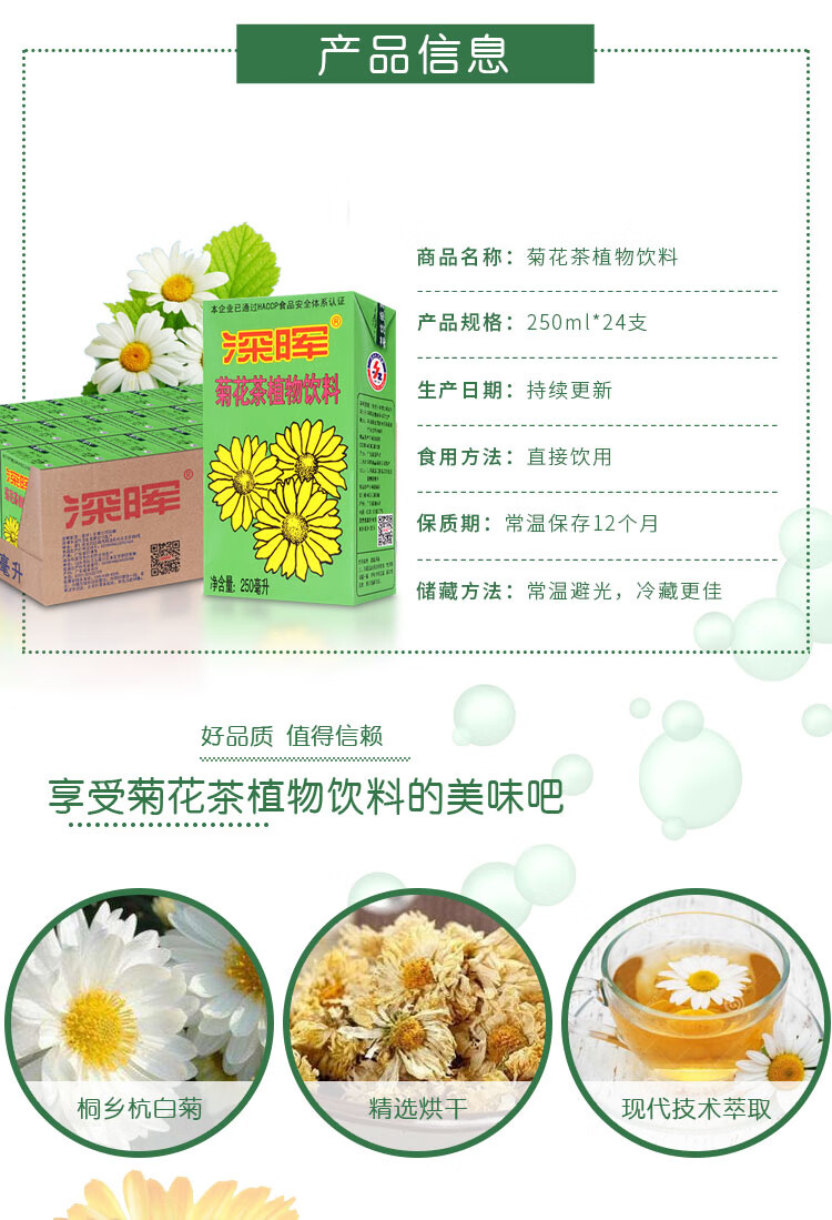 深晖 菊花茶饮料整箱250ml*24盒 雾雨绿