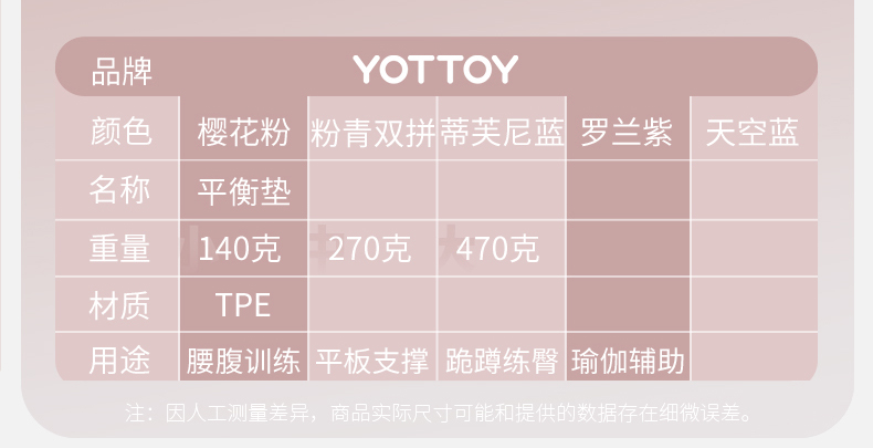 YOTTOY TPE支撑瑜伽垫小号20*30cm qtph2308x1B1000530e008 50mm 罗兰紫(单位:块)