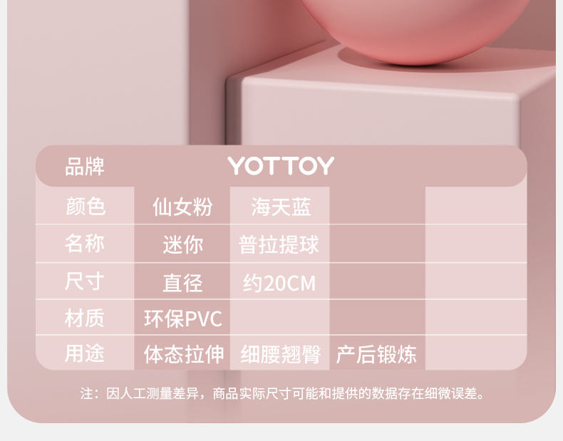 YOTTOY 普拉提小球 APLTHTL20400 20cm 海天蓝(单位:个)