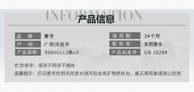 天地壹号 巴马壹号矿泉水 350ml*12瓶*2件 天然弱碱性巴马长寿村 混色(单位:箱)