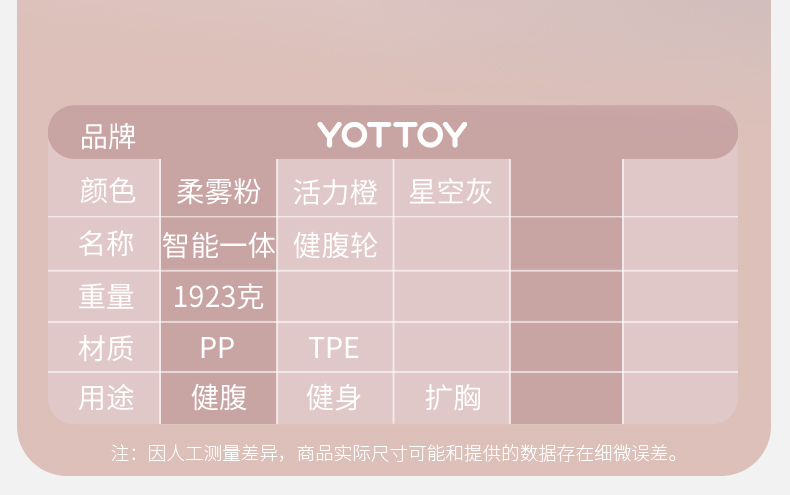 YOTTOY 两轮肘撑健腹轮含跪垫 无计时器款 qtjfl23001a02 1.9kg 灰色(单位:个)