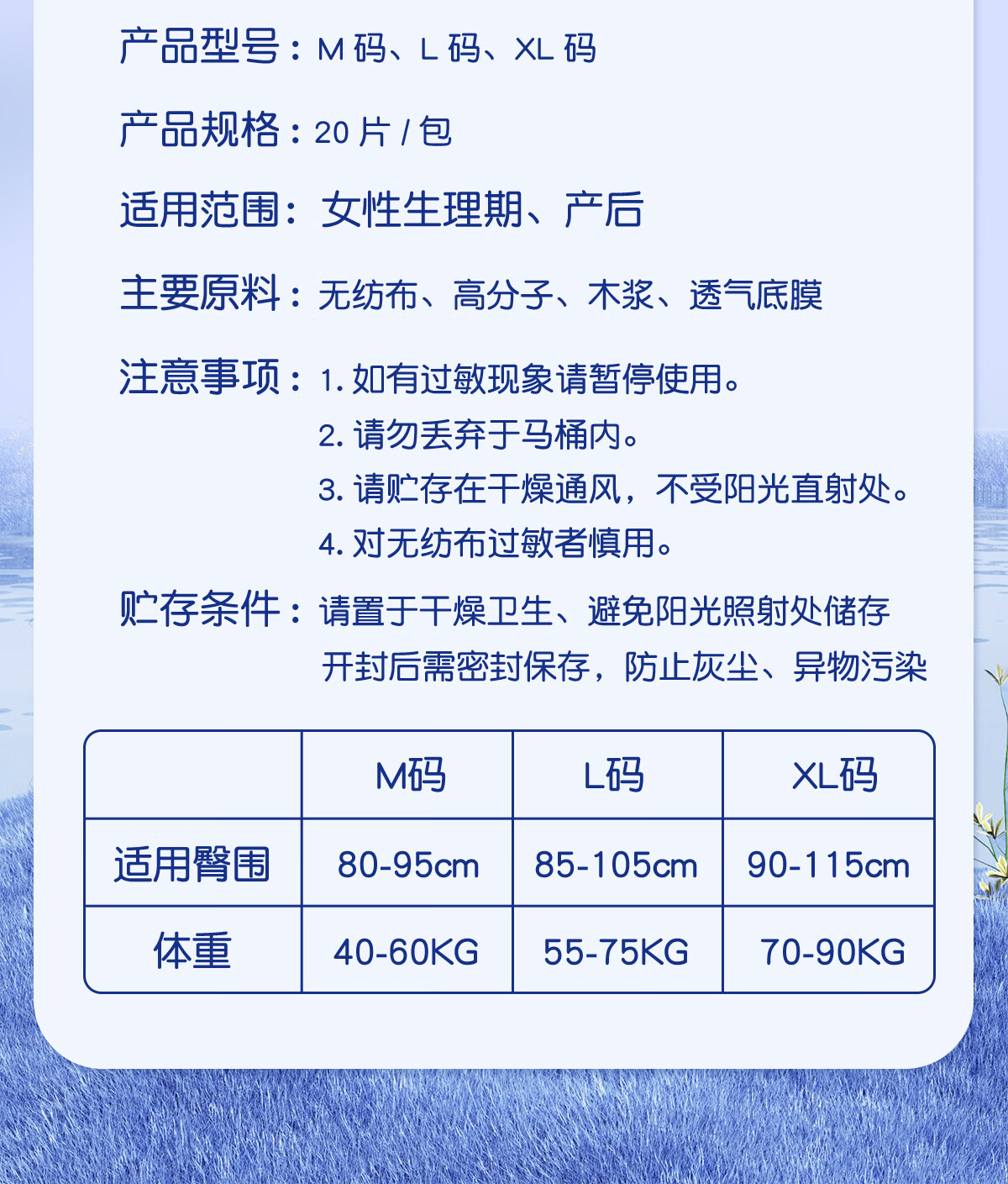 安可新 液态棉裤型卫生巾 AKX-9219 20片*1包 混色(单位:包)