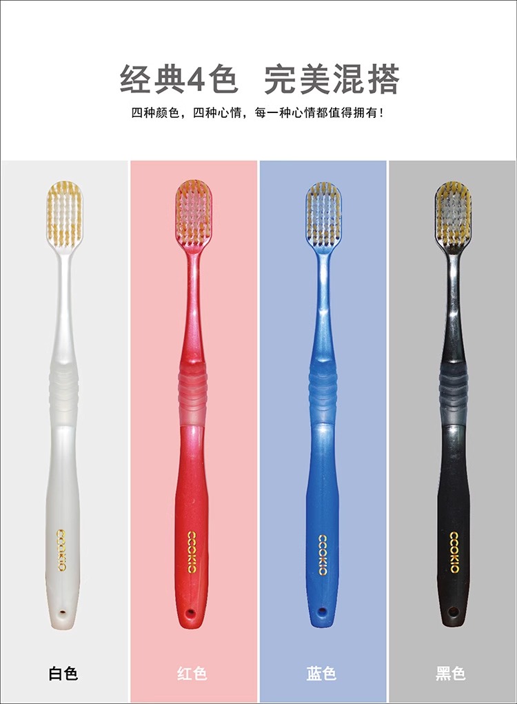 酷优客(CCOKIO) 抗菌舒适软毛54孔宽头牙刷 宽头羽感刷毛 4支装*3组(共12支) 混色(单位:组)