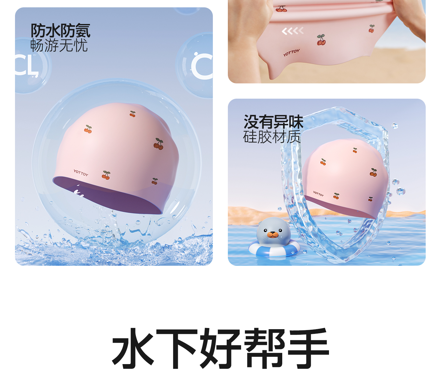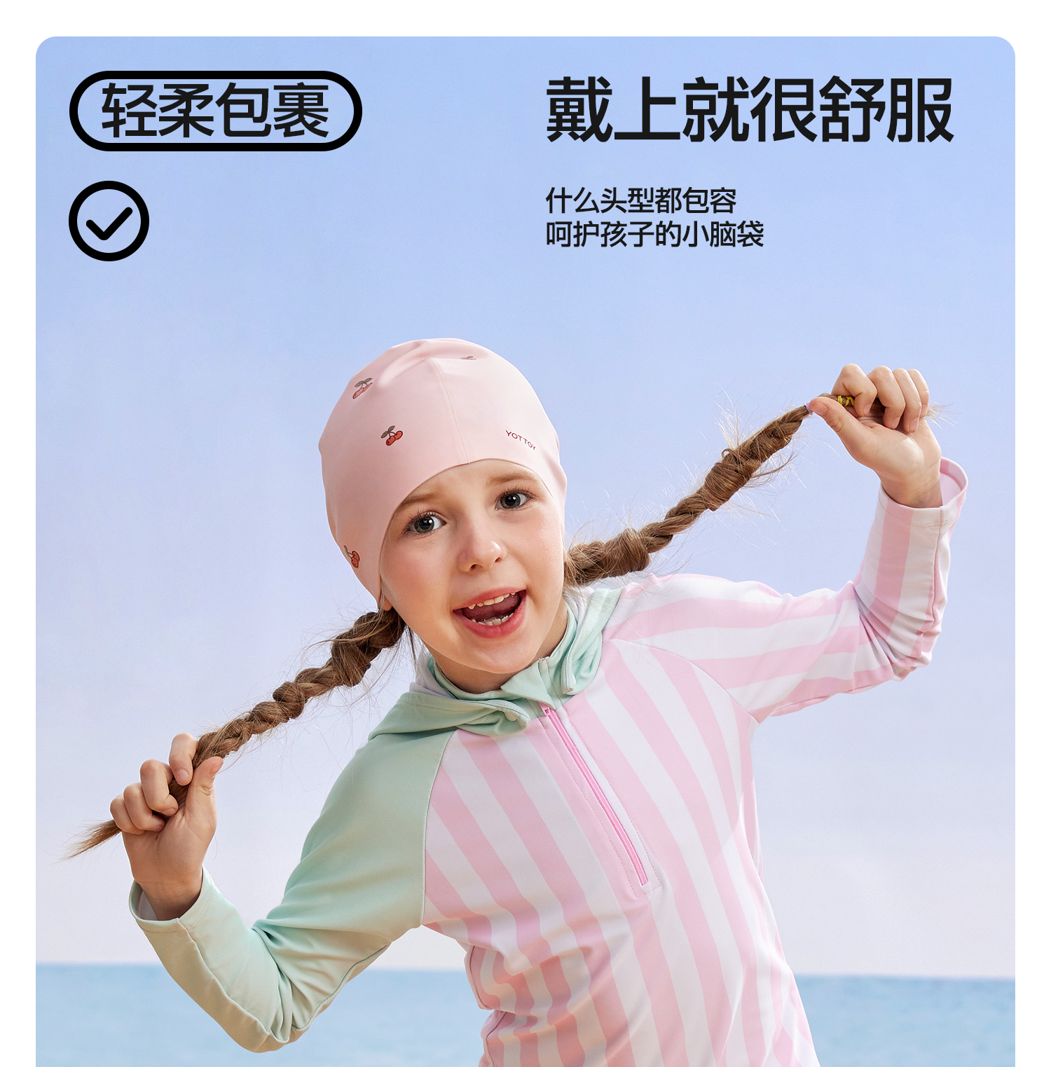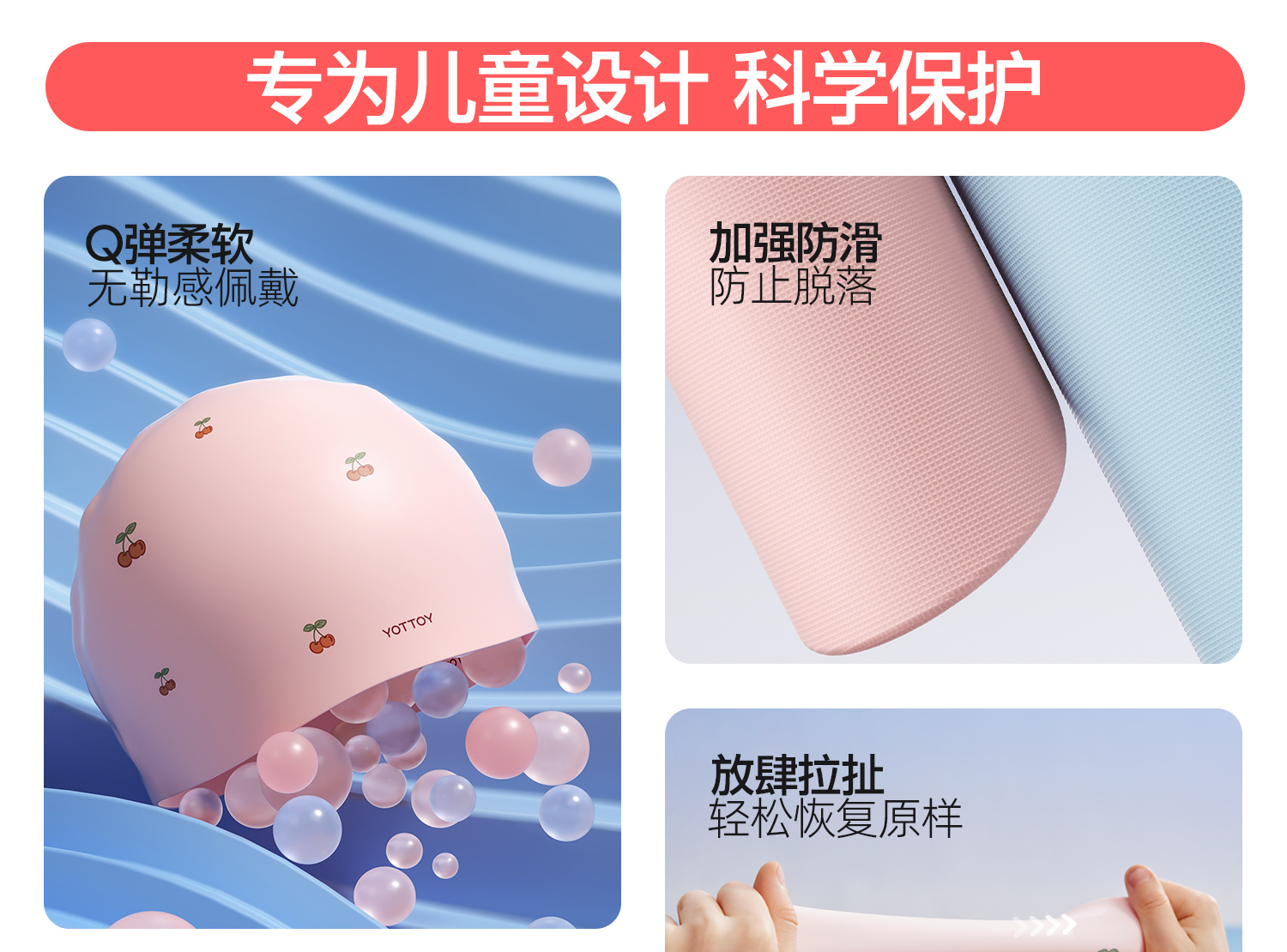 YOTTOY 儿童硅胶泳帽 yyym2503x1A00023195a005 55g 粉漾樱桃(单位:顶)