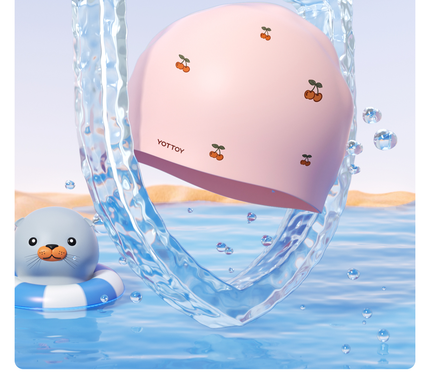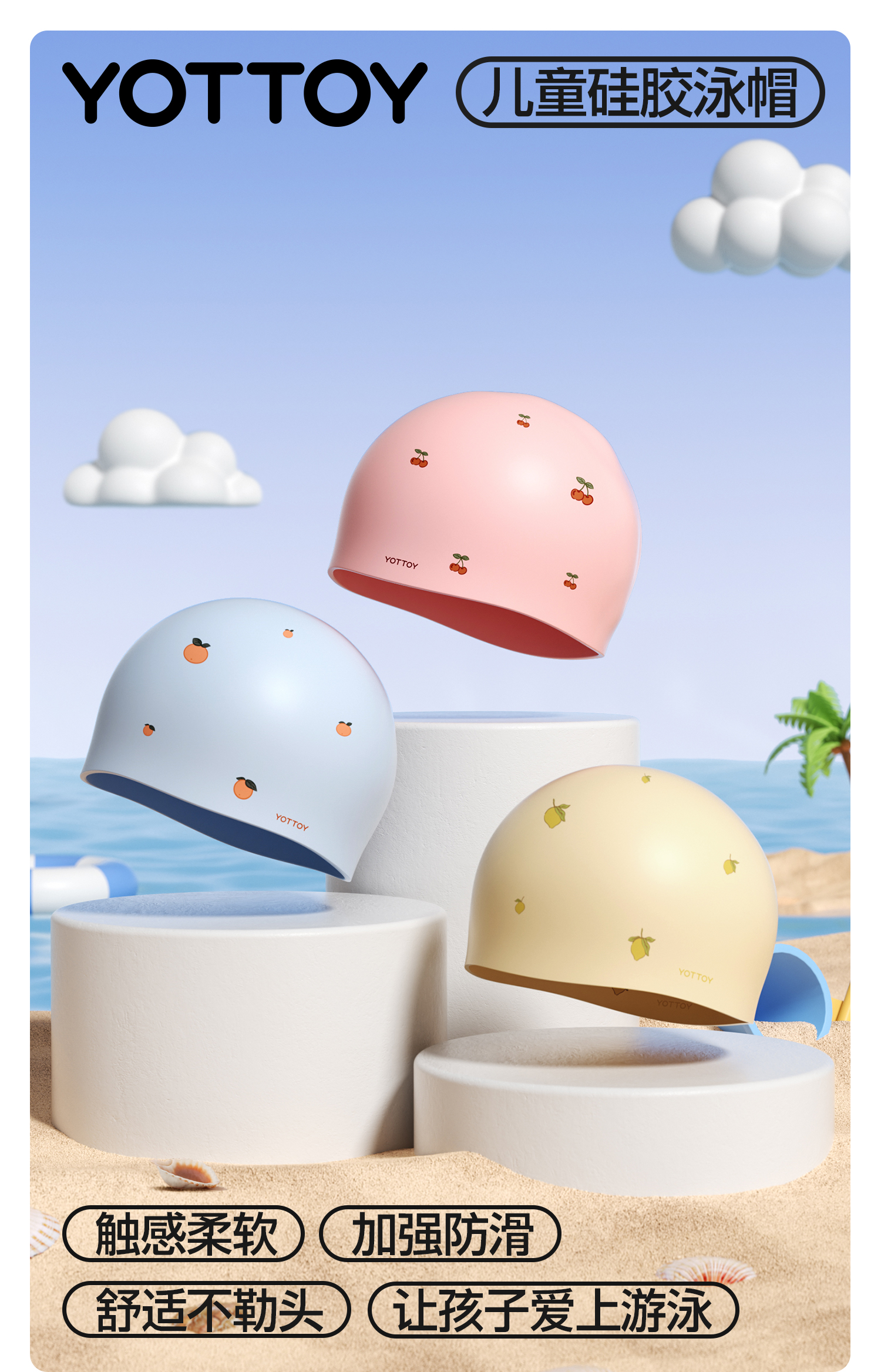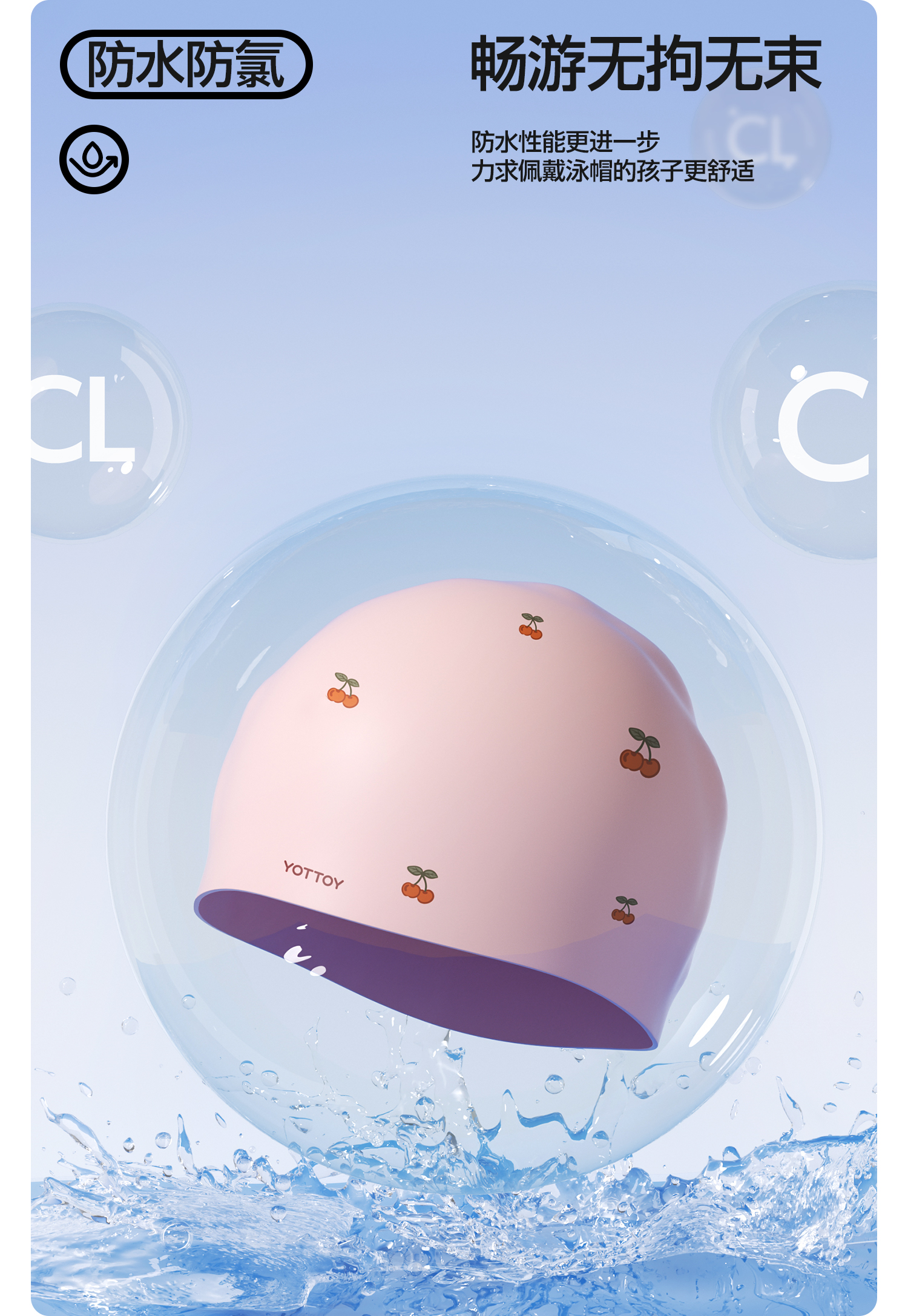 YOTTOY 儿童硅胶泳帽 yyym2503x1A00023195a005 55g 粉漾樱桃(单位:顶)