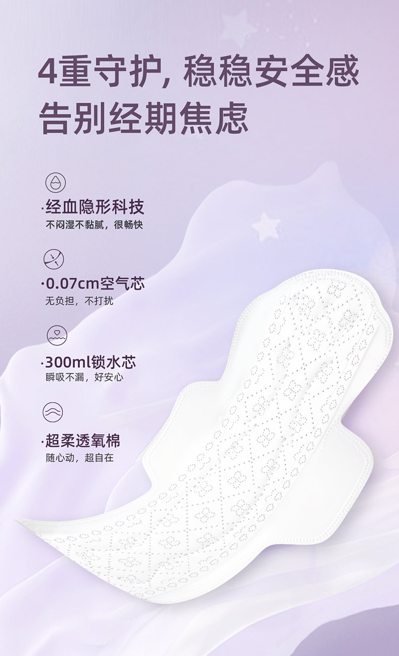 凯儿得乐(care daily) 纤薄芯夜用卫生巾360mm 透氧棉 6片/包*2包 紫色(单位:组)