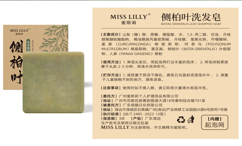 蜜斯莉 MISS LILLY 洗发皂 侧柏叶 80g 绿色(单位:盒)