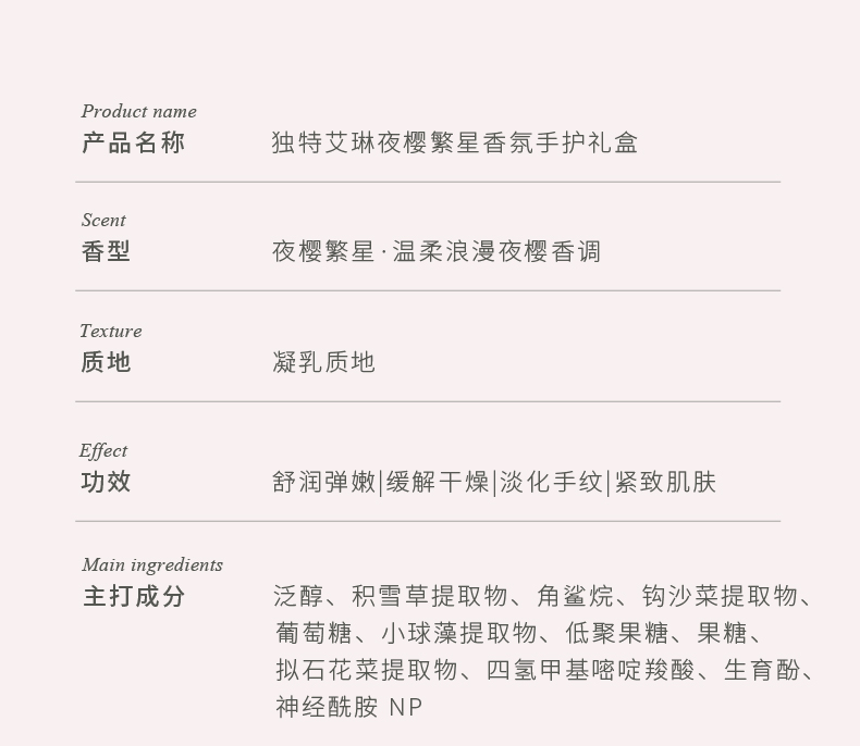 独特艾琳(Dear lrean) 香氛手护礼盒 夜樱繁星 45ml(含4件商品) 茱萸粉(单位:套)
