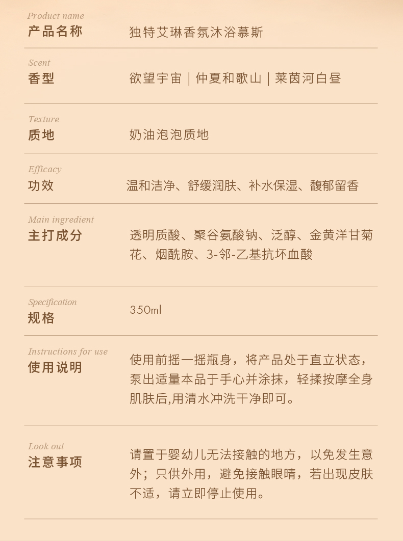 独特艾琳(Dear lrean) 香氛沐浴慕斯 欲望宇宙 350ml 花香型(单位:瓶)