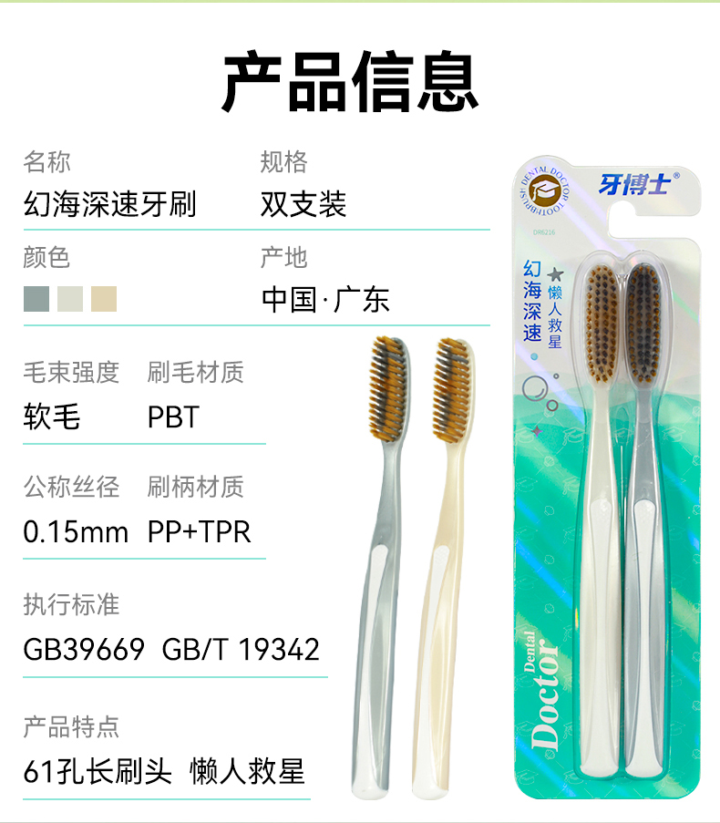 牙博士 牙刷 幻海深速DR6216 1套2支装 混色(单位:套)