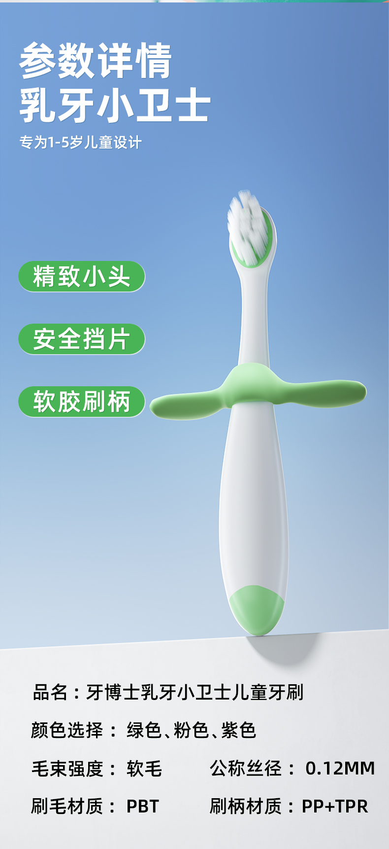 牙博士 乳牙小卫士儿童牙刷 DR9102 3支装 混色(单位:套)