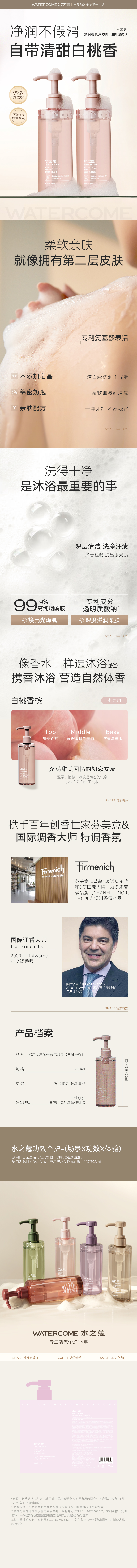 水之蔻 净润香氛沐浴露 白桃香槟 400ml*1瓶 粉色(单位:瓶)