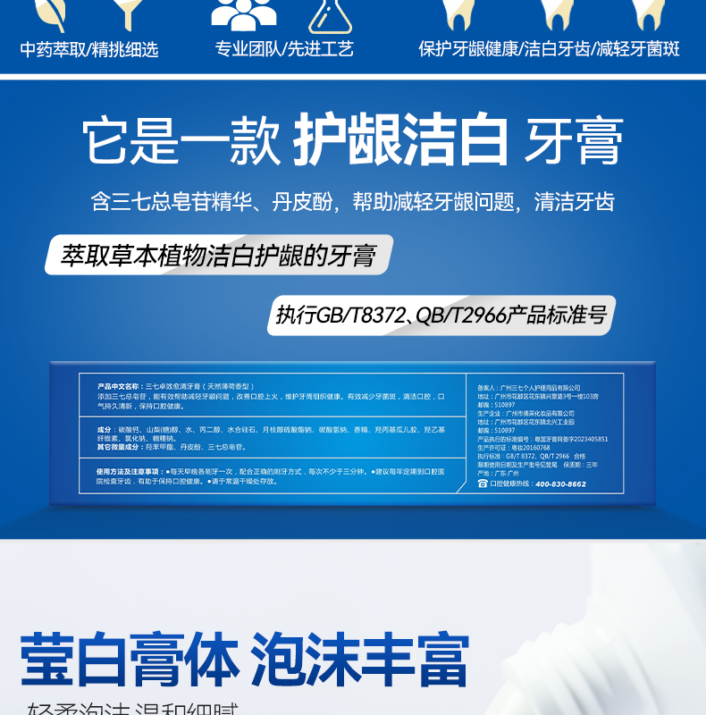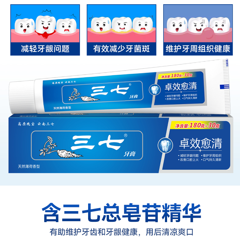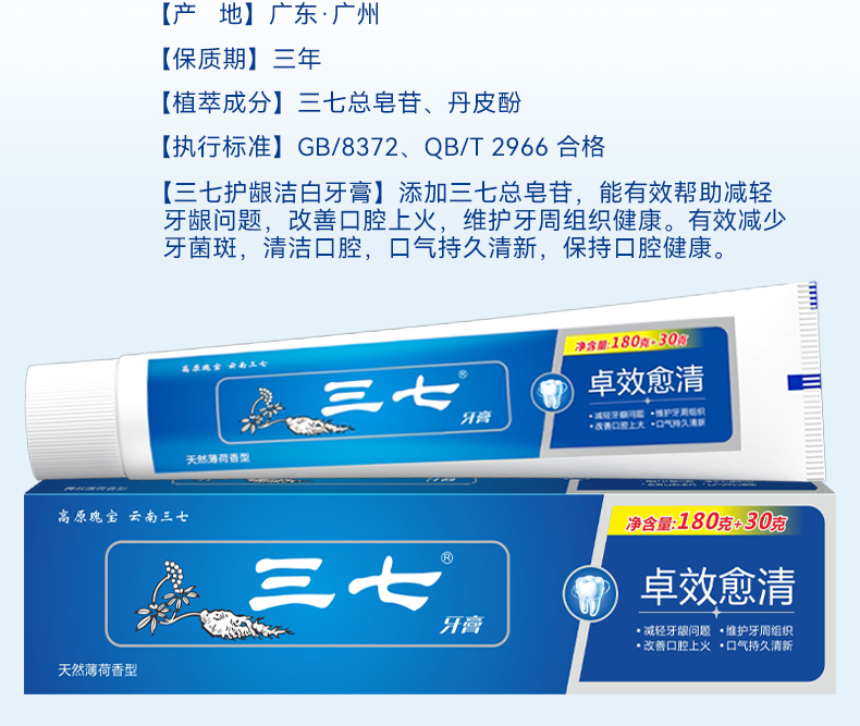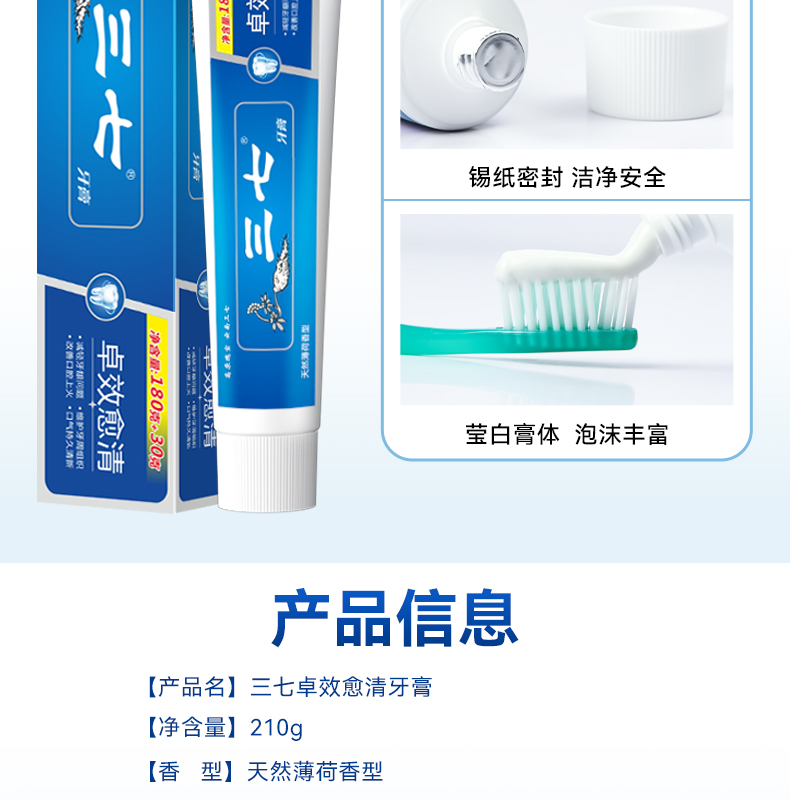 三七 无氟牙膏 卓效愈清 210g 宝石蓝(单位:支)
