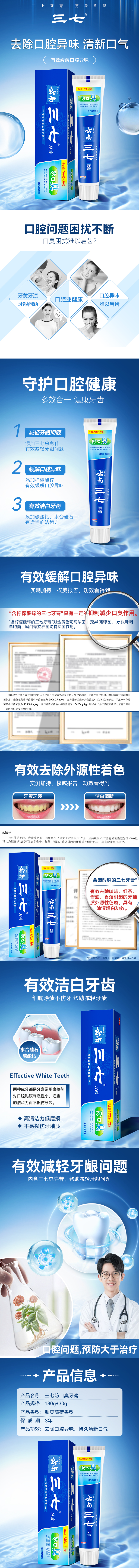 三七 薄荷香型牙膏 劲爽 180g+30g 宝石蓝(单位:支)