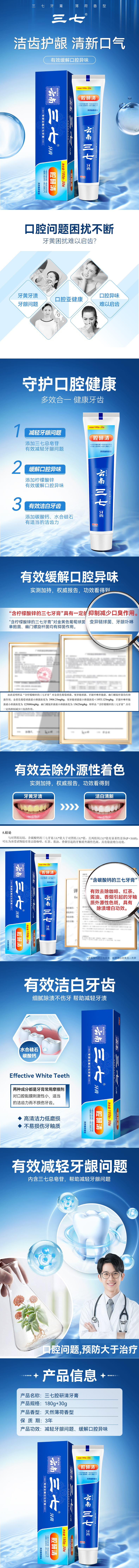 三七 薄荷香型牙膏 腔研清 180g+30g 宝石蓝(单位:支)