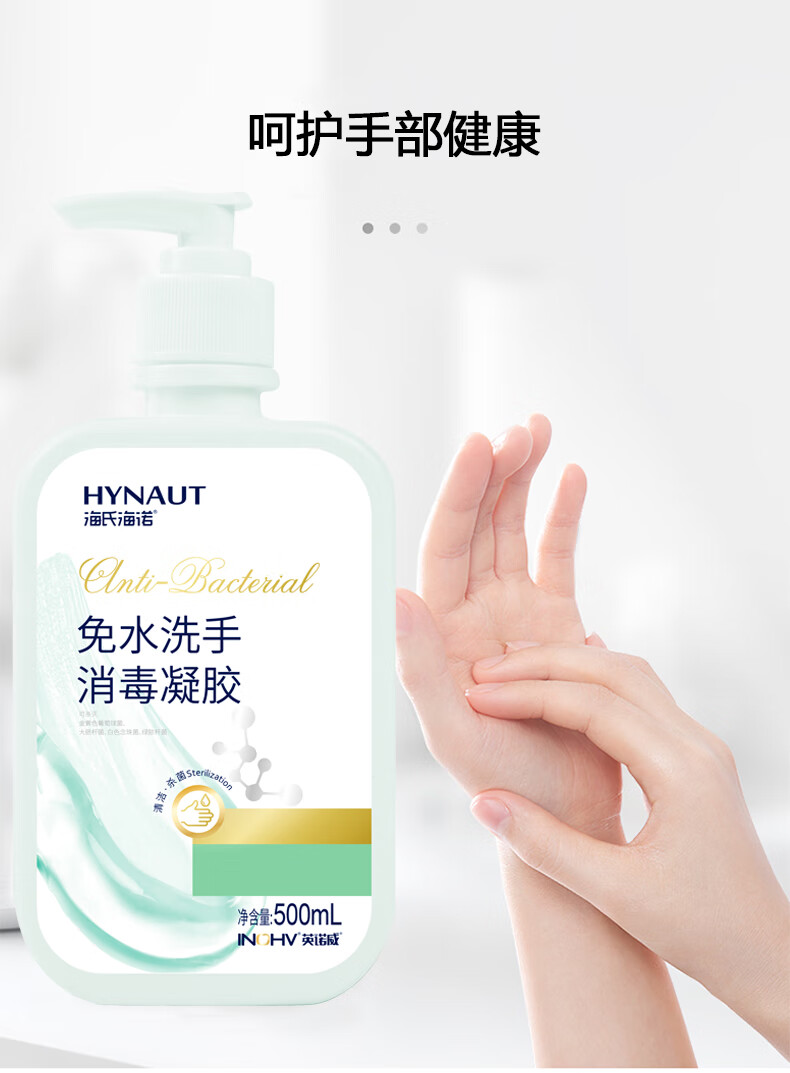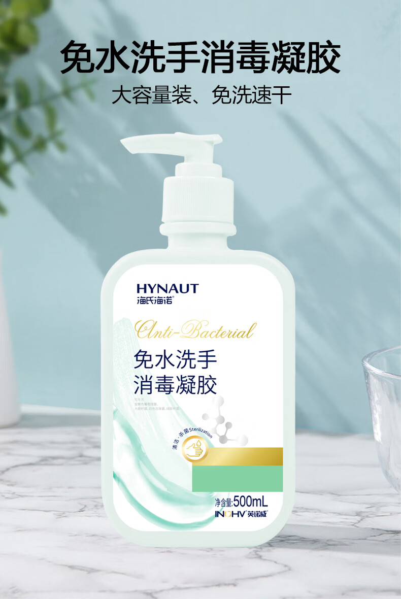 海氏海诺英诺威 75%酒精免水洗手消毒凝胶500ml【2瓶装】 免洗速干洗手液大瓶 无色