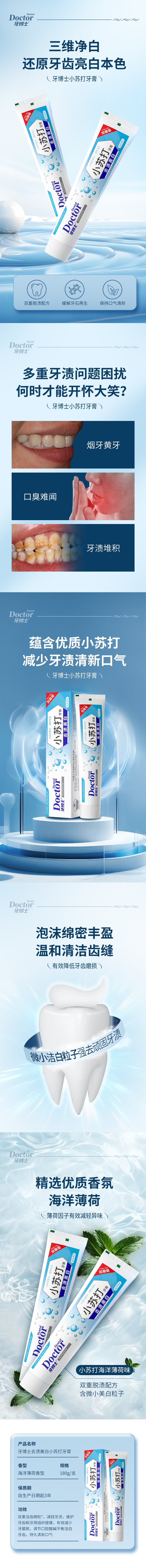 牙博士 牙膏 去渍美白小苏打调酸碱平衡减少牙菌斑 180g 水蓝色(单位:支)