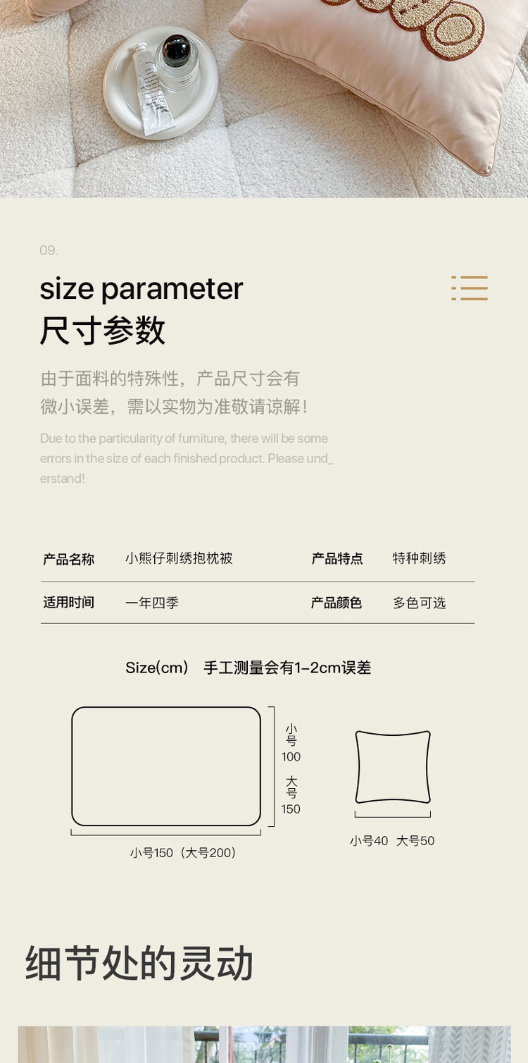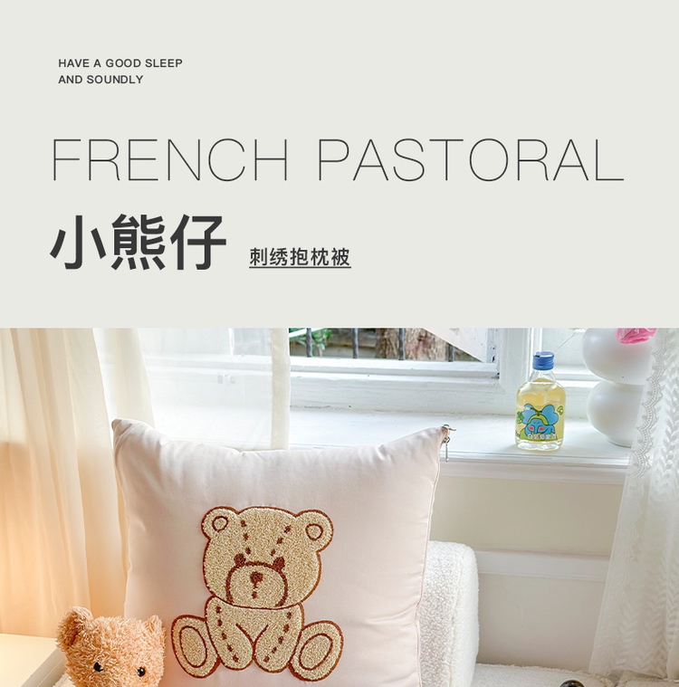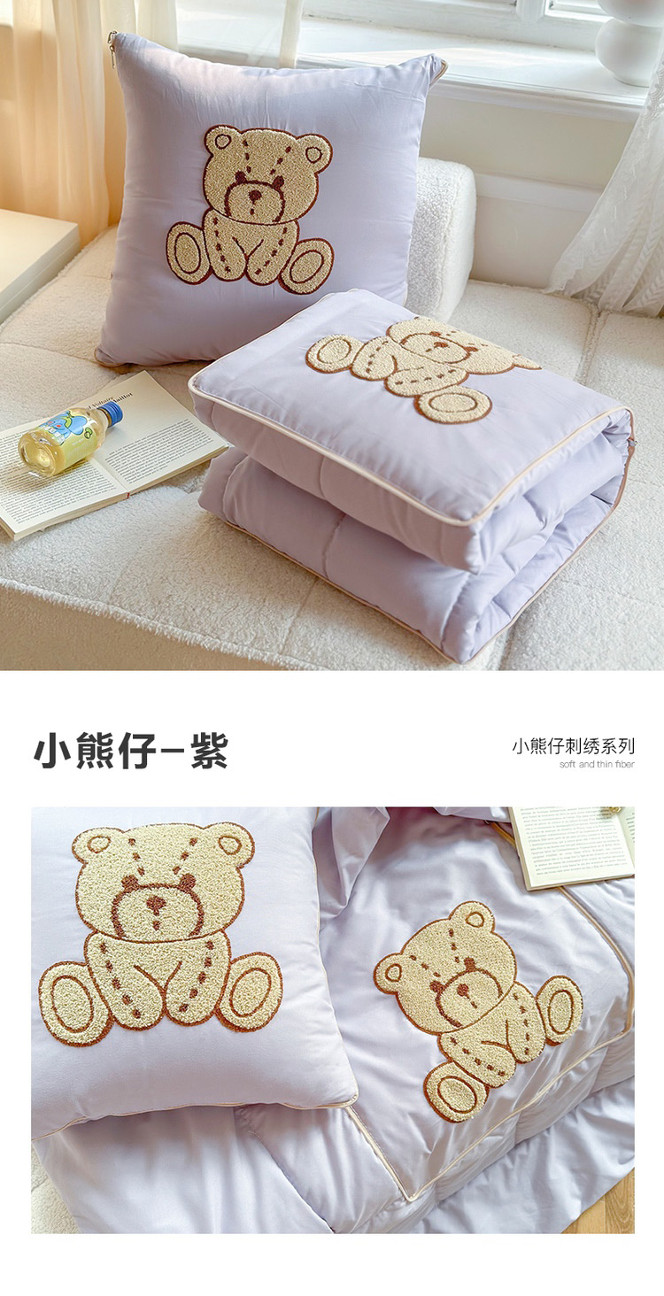 樵纪 小熊仔刺绣抱枕被 小熊仔 50*50cm展开被子150*200cm 紫色(单位:只)