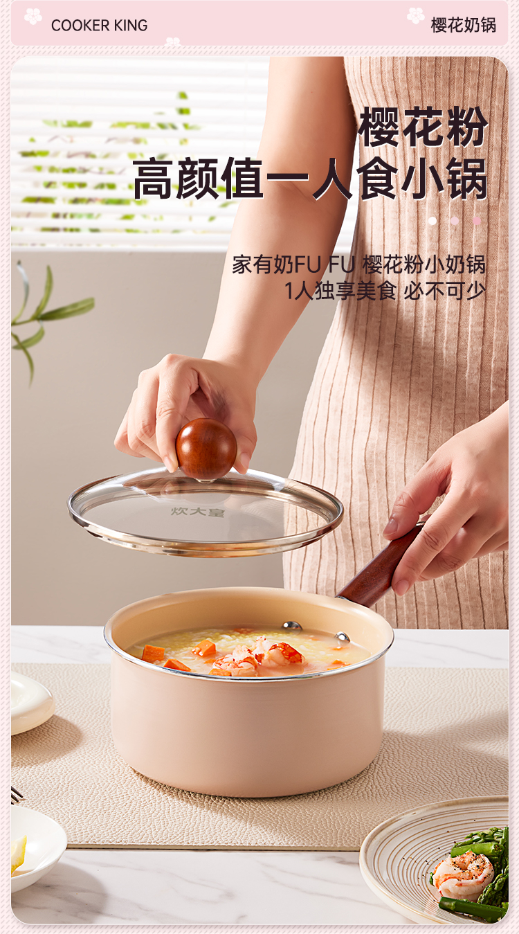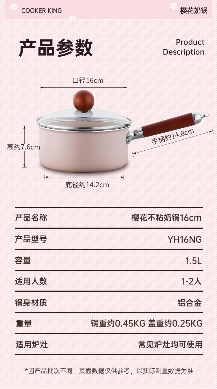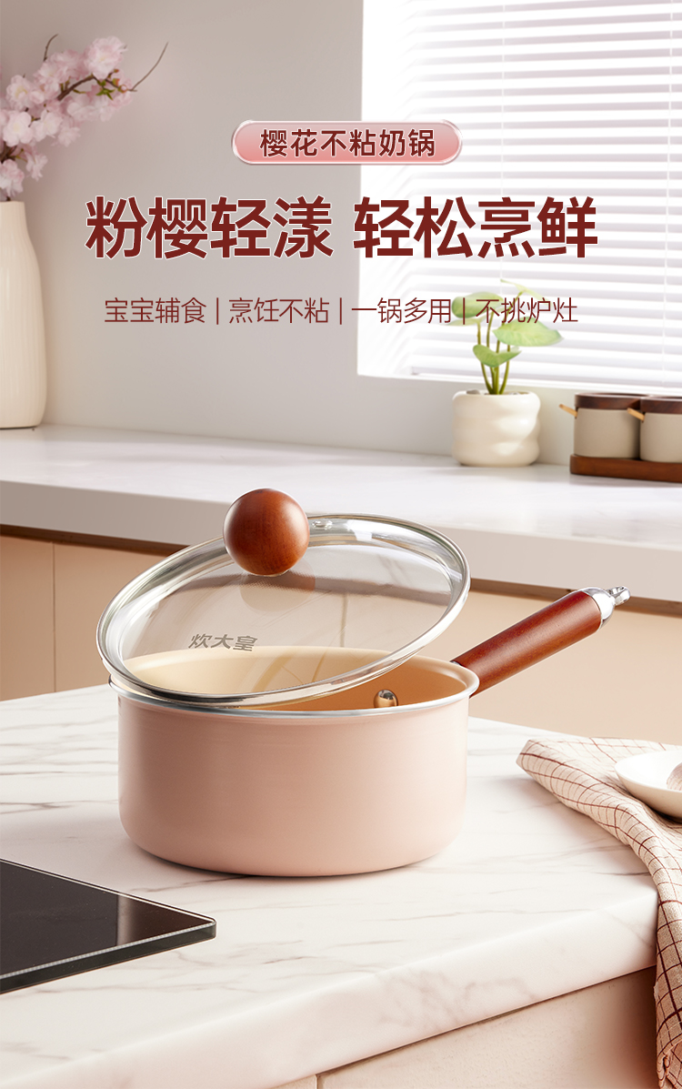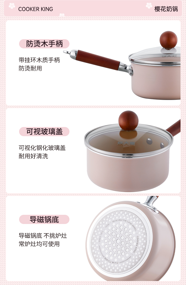 炊大皇 樱花不粘奶锅 YH16NG 16cm 粉色(单位:只)