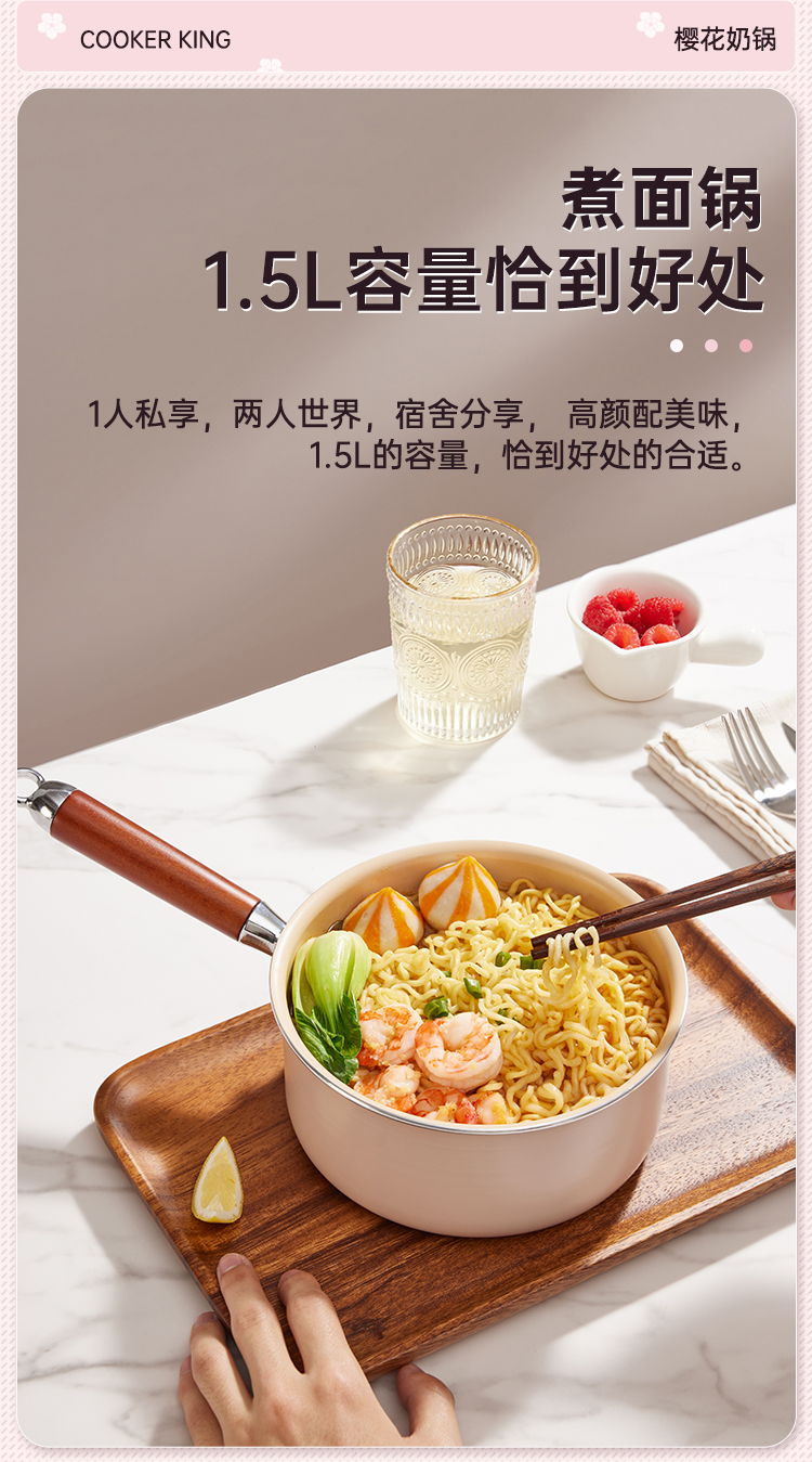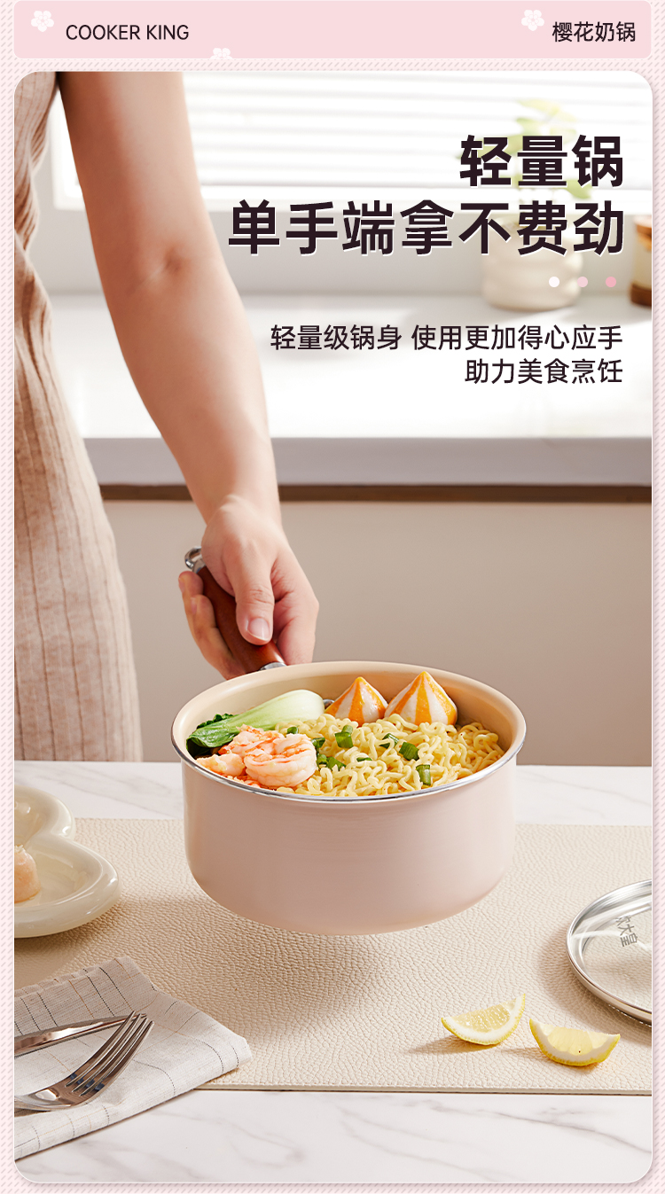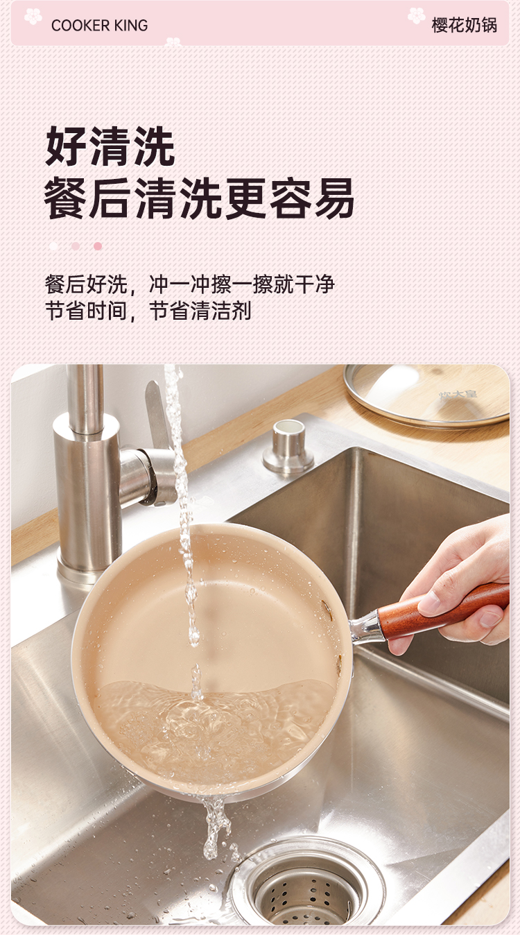 炊大皇 樱花不粘奶锅 YH16NG 16cm 粉色(单位:只)
