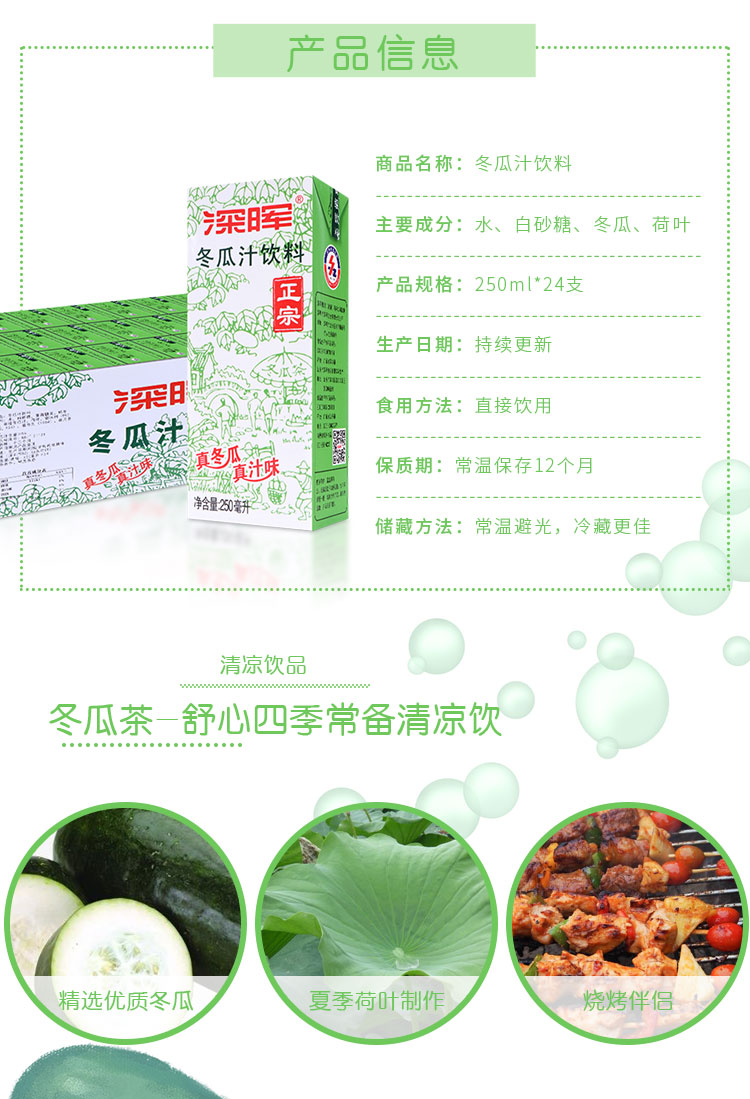 深晖-苗条冬瓜汁250ML*24盒夏季清火解渴饮料饮品 灰绿色