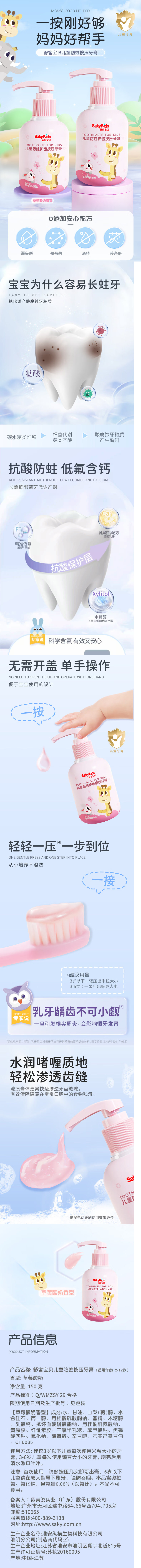 舒客 宝贝儿童防蛀护齿按压牙膏 草莓味 150g 粉色(单位:瓶)